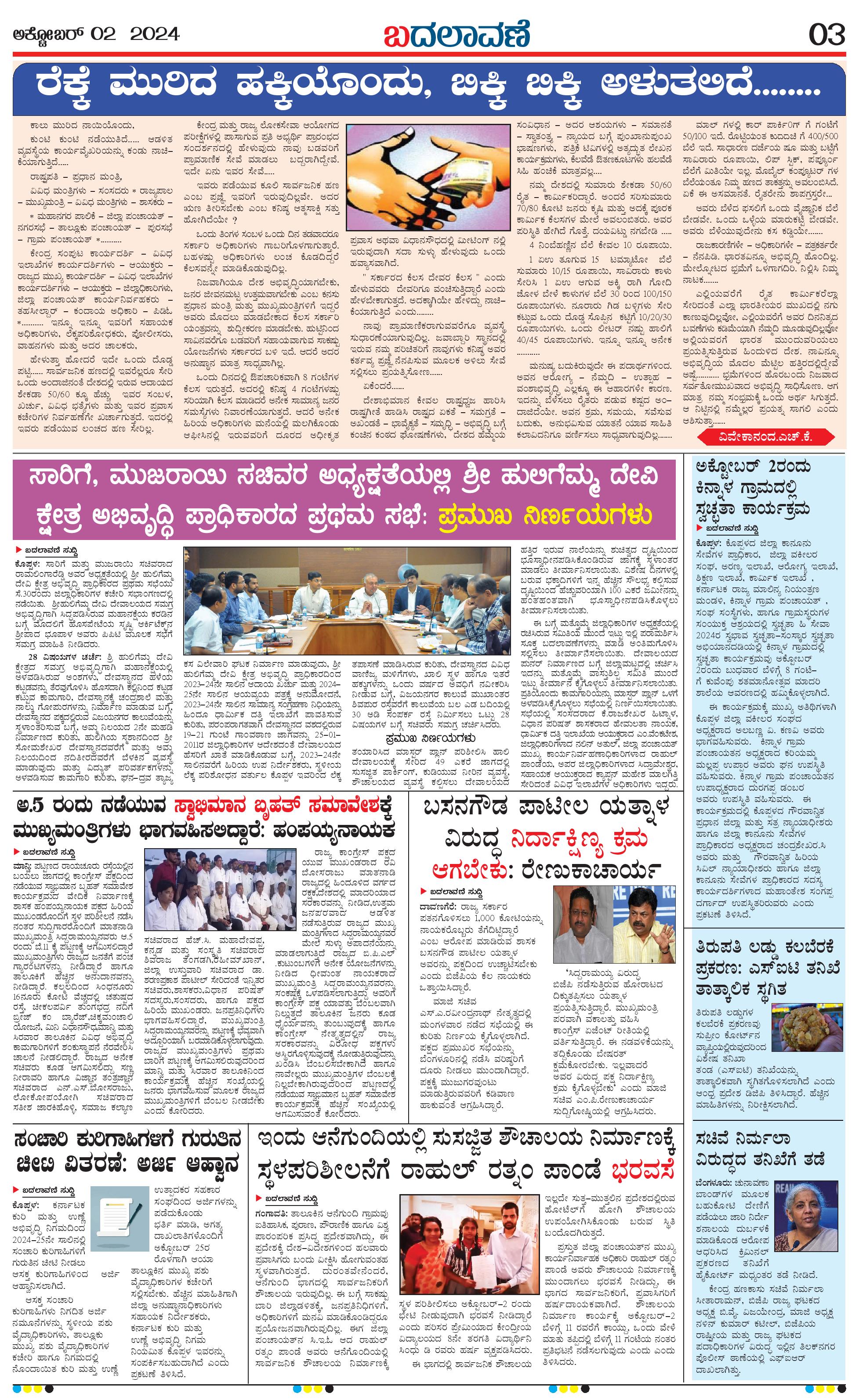 ಬದಲಾವಣೆ 02 October 2024 Page: 3 October 02, 2024 << First << 3 >> Last >> Page 1Page 2Page 3Page 4 × ಬದಲಾವಣೆ 02 October 2024 page-1page-2page-3page-4 << First << 3 >> Last >> page-1page-2page-3page-4 page-3