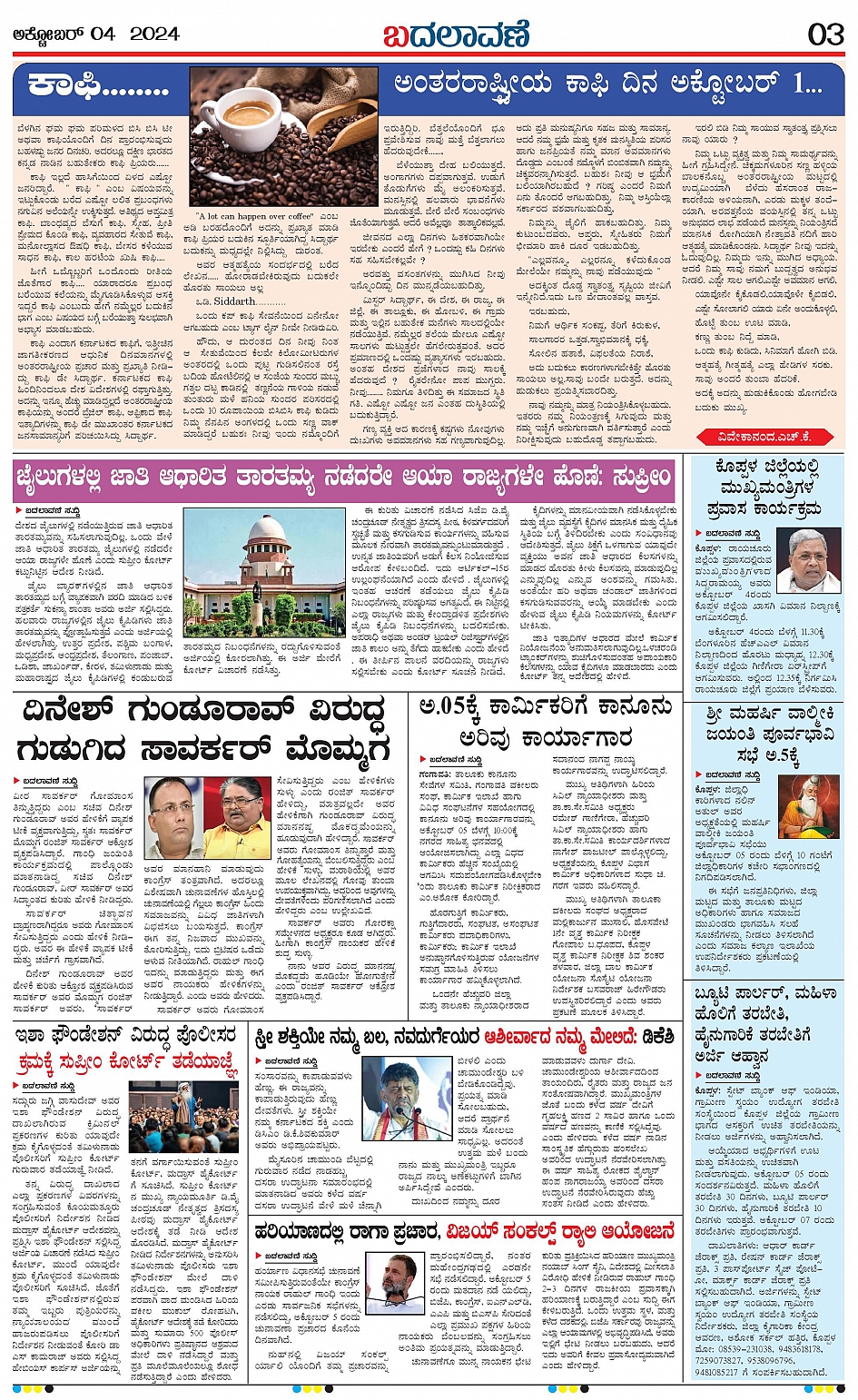 ಬದಲಾವಣೆ 04 October 2024 Page: 3 October 04, 2024 << First << 3 >> Last >> Page 1Page 2Page 3Page 4 × ಬದಲಾವಣೆ 04 October 2024 page-1page-2page-3page-4 << First << 3 >> Last >> page-1page-2page-3page-4 page-3