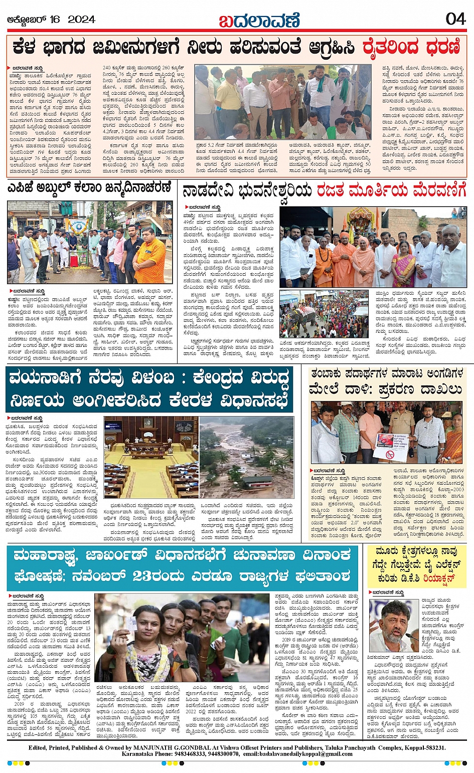 ಬದಲಾವಣೆ 16 October 2024 Page: 4 October 16, 2024 << First << 4 >> Last >> Page 1Page 2Page 3Page 4 × ಬದಲಾವಣೆ 16 October 2024 page-1page-2page-3page-4 << First << 4 >> Last >> page-1page-2page-3page-4 page-4