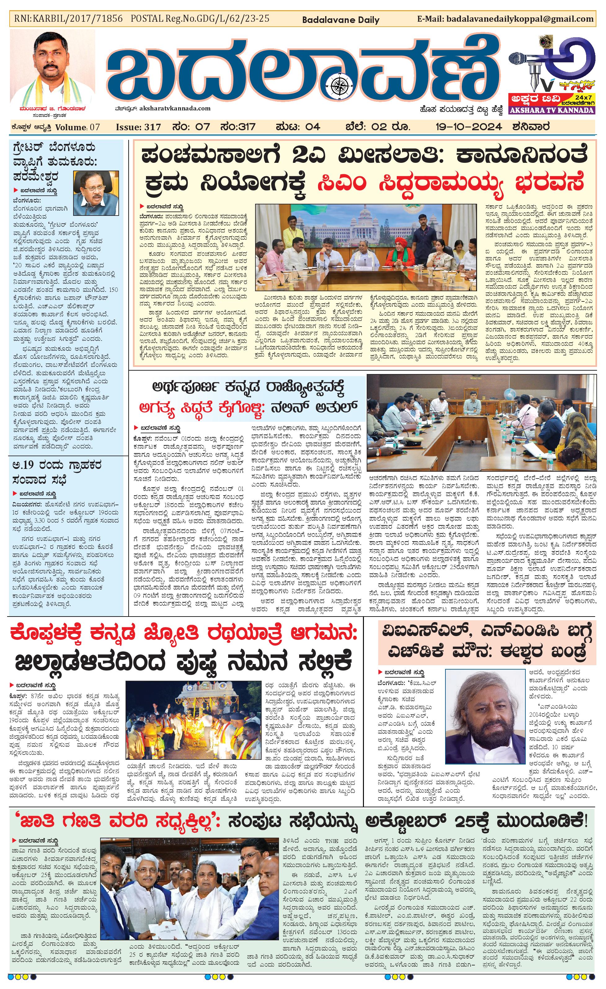 ಬದಲಾವಣೆ 19 October 2024 October 19, 2024 << First << 1 >> Last >> Page 1Page 2Page 3Page 4 × ಬದಲಾವಣೆ 19 October 2024 page-1page-2page-3page-4 << First << 1 >> Last >> page-1page-2page-3page-4 page-1