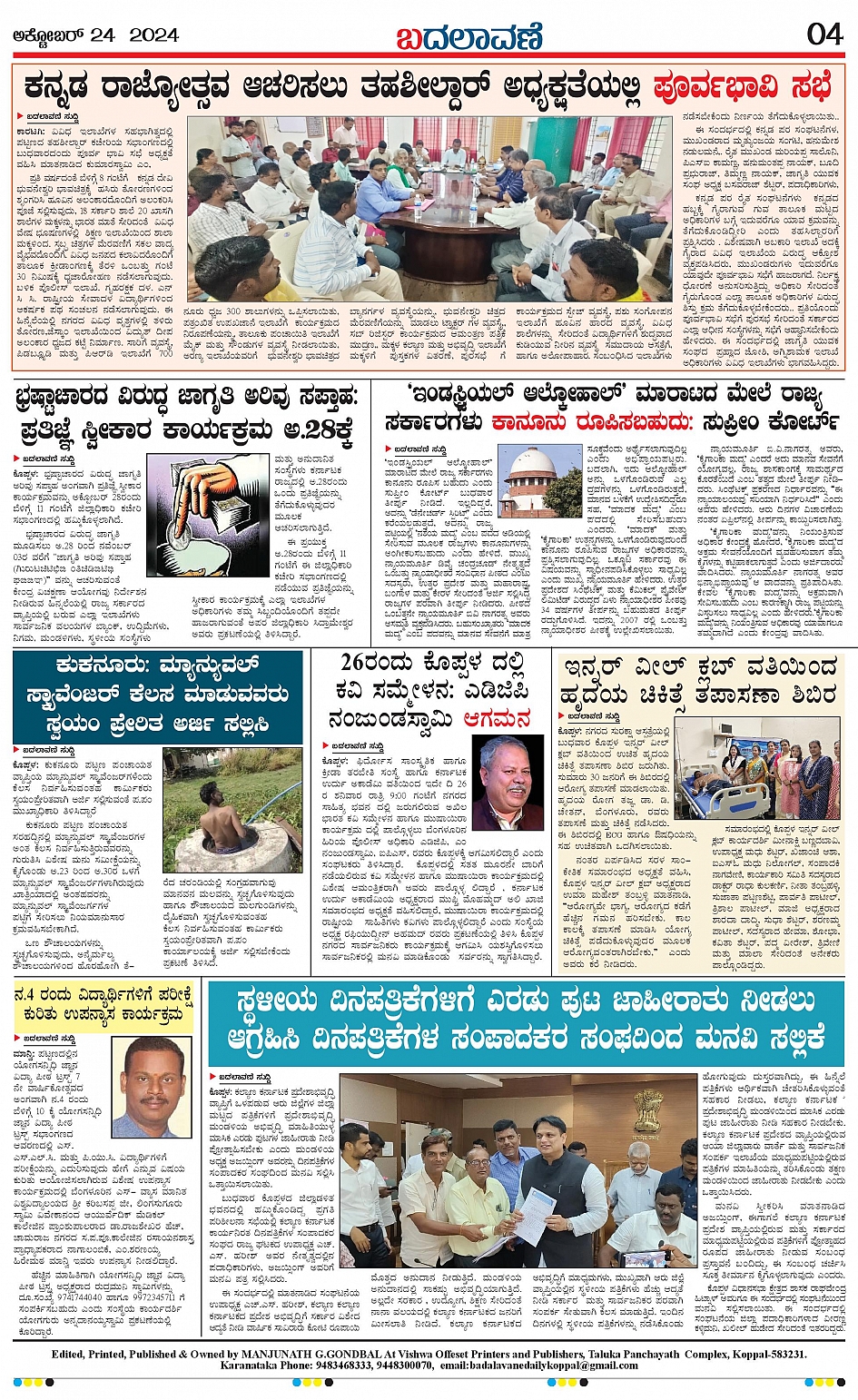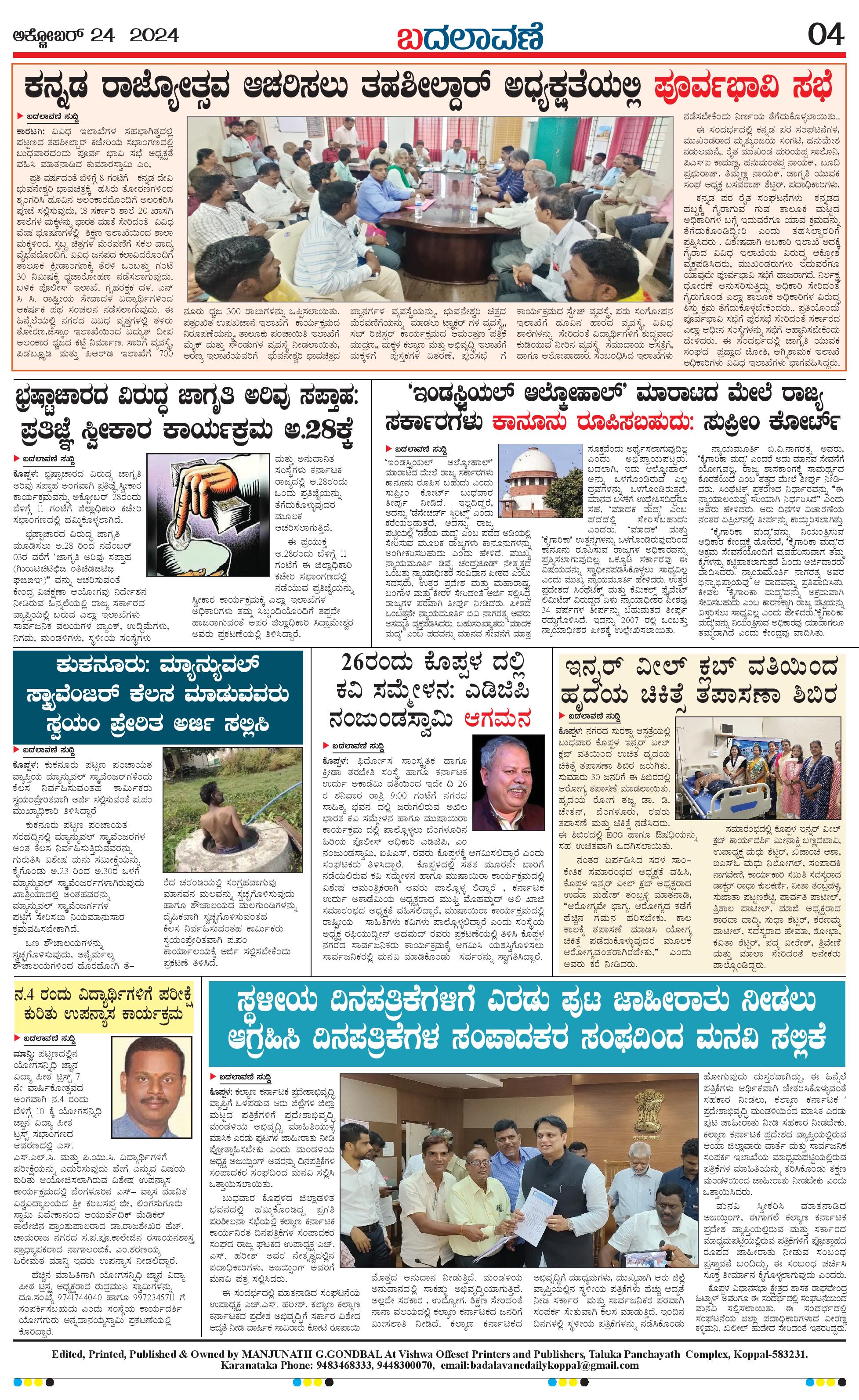 ಬದಲಾವಣೆ 24 October 2024 Page: 4 October 24, 2024 << First << 4 >> Last >> Page 1Page 2Page 3Page 4 × ಬದಲಾವಣೆ 24 October 2024 page-1page-2page-3page-4 << First << 4 >> Last >> page-1page-2page-3page-4 page-4