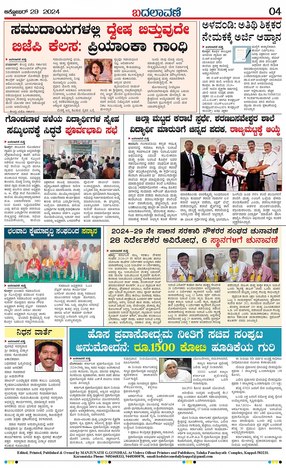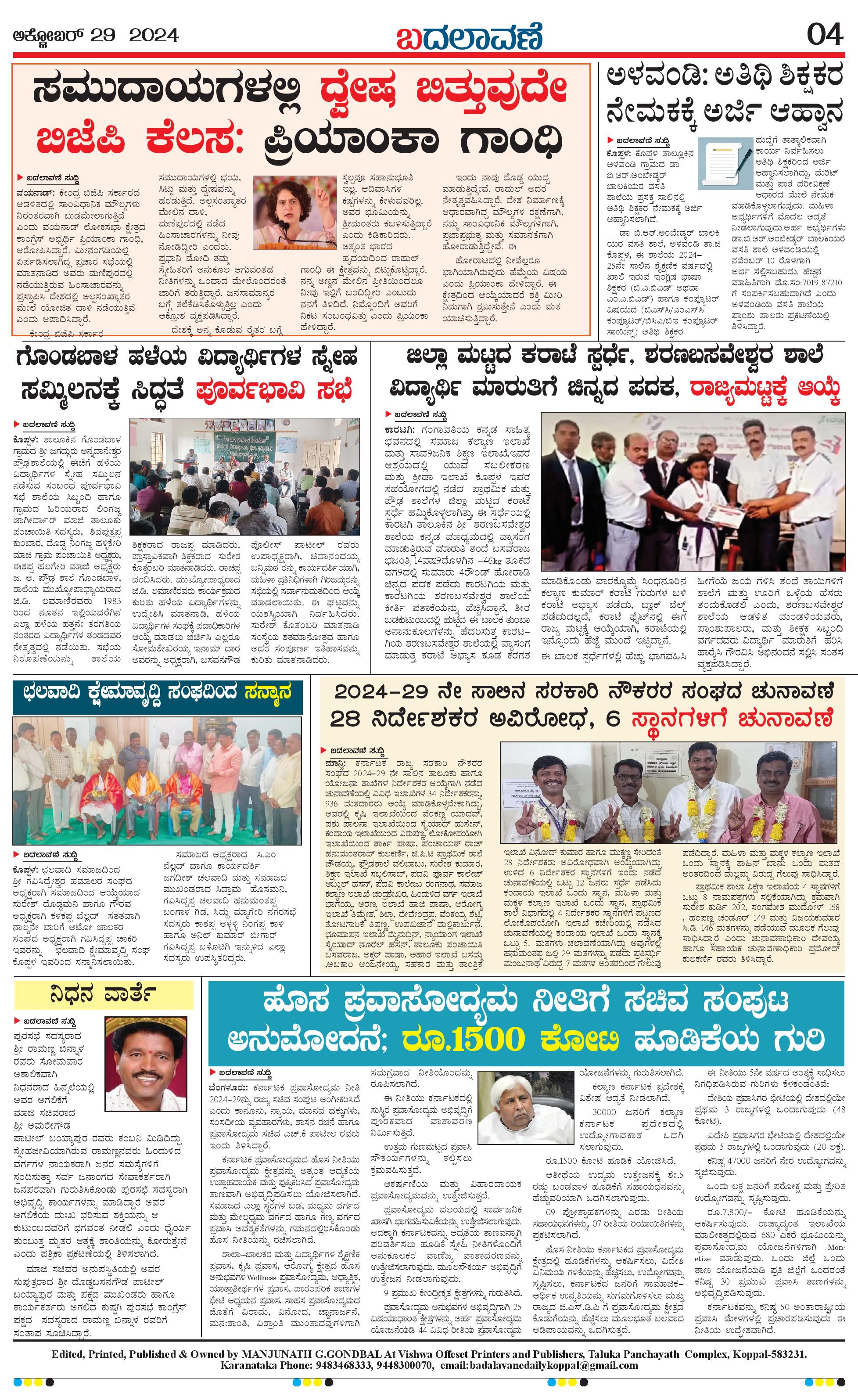 ಬದಲಾವಣೆ 29 October 2024 Page: 4 October 29, 2024 << First << 4 >> Last >> Page 1Page 2Page 3Page 4 × ಬದಲಾವಣೆ 29 October 2024 page-1page-2page-3page-4 << First << 4 >> Last >> page-1page-2page-3page-4 page-4