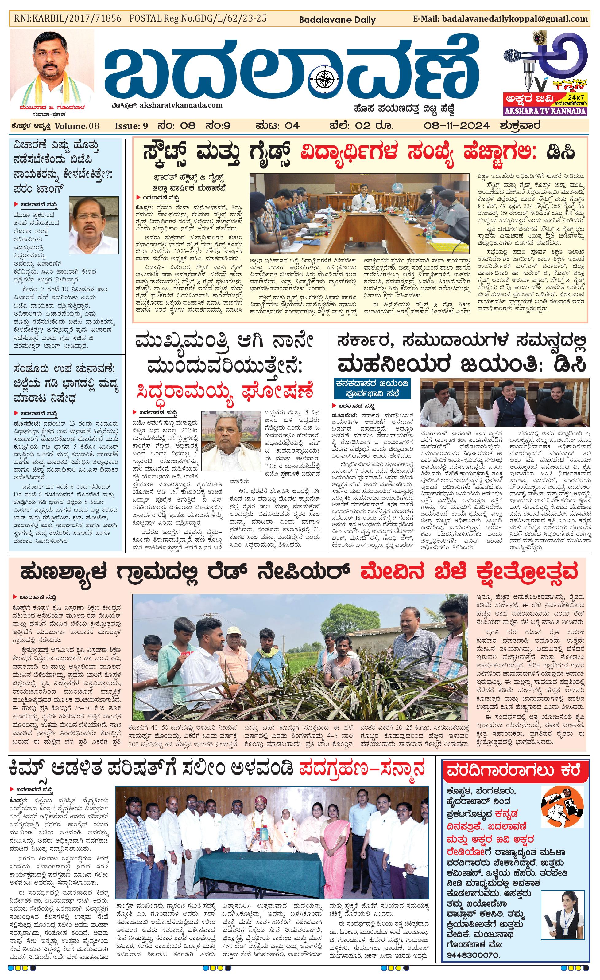 ಬದಲಾವಣೆ 08 November 2024 November 08, 2024 << First << 1 >> Last >> Page 1Page 2Page 3Page 4 × ಬದಲಾವಣೆ 08 November 2024 page-1page-2page-3page-4 << First << 1 >> Last >> page-1page-2page-3page-4 page-1