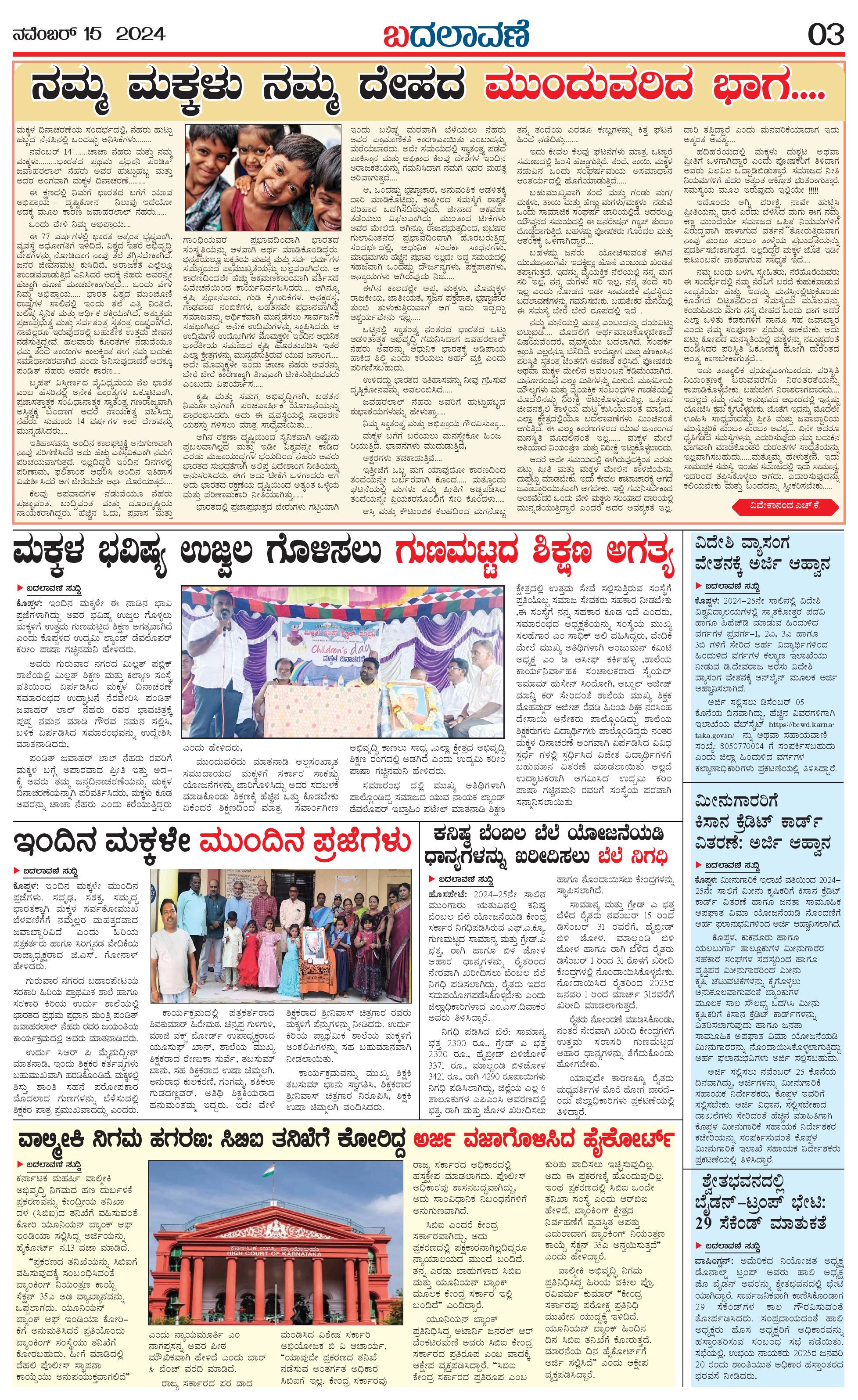ಬದಲಾವಣೆ 15 November 2024 Page: 3 November 15, 2024 << First << 3 >> Last >> Page 1Page 2Page 3Page 4 × ಬದಲಾವಣೆ 15 November 2024 page-1page-2page-3page-4 << First << 3 >> Last >> page-1page-2page-3page-4 page-3