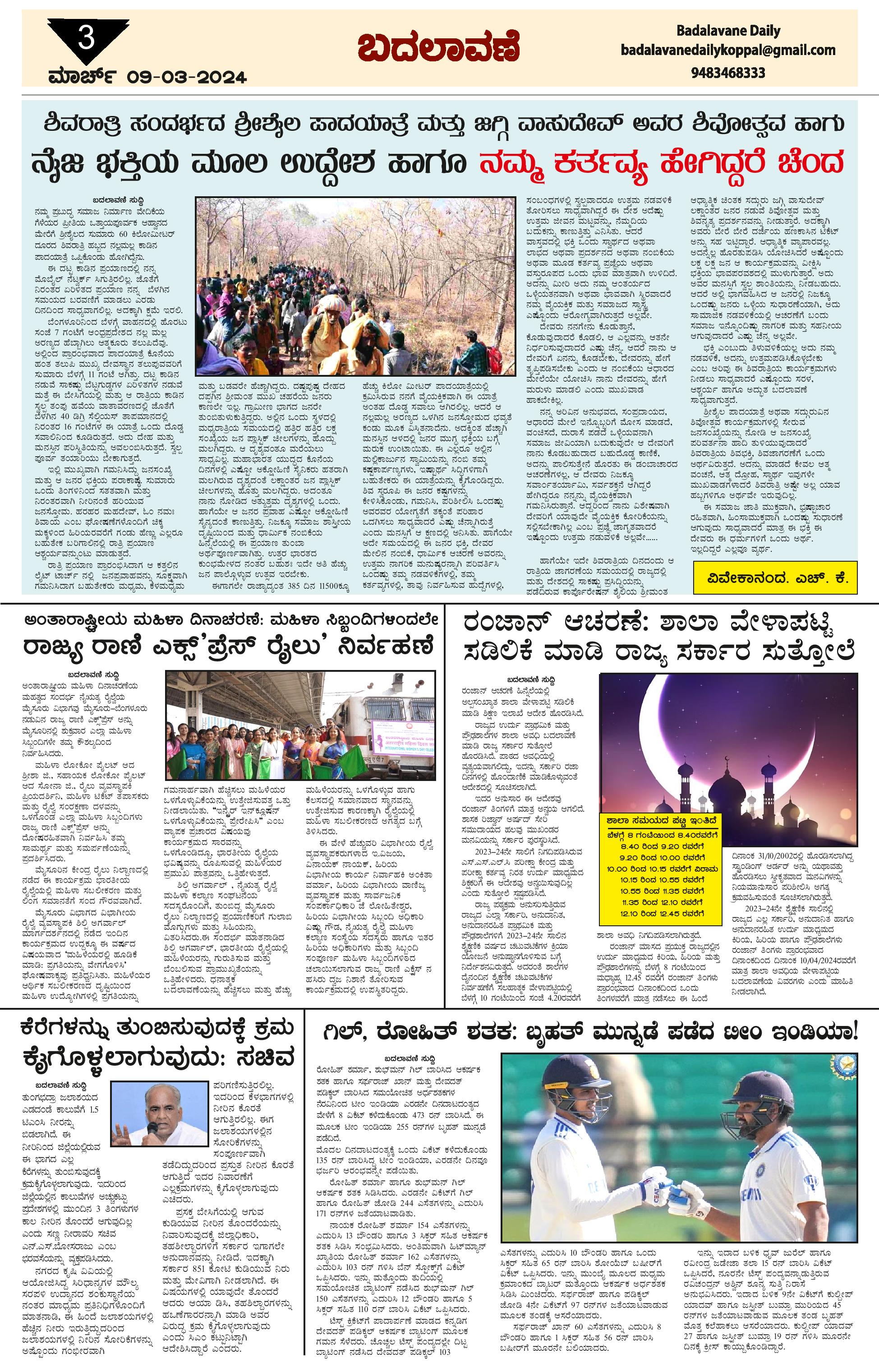 ಬದಲಾವಣೆ 09Mar 2024 Page: 3 March 09, 2024 << First << 3 >> Last >> Page 1Page 2Page 3Page 4 × ಬದಲಾವಣೆ 09Mar 2024 page-1page-2page-3page-4 << First << 3 >> Last >> page-1page-2page-3page-4 page-3