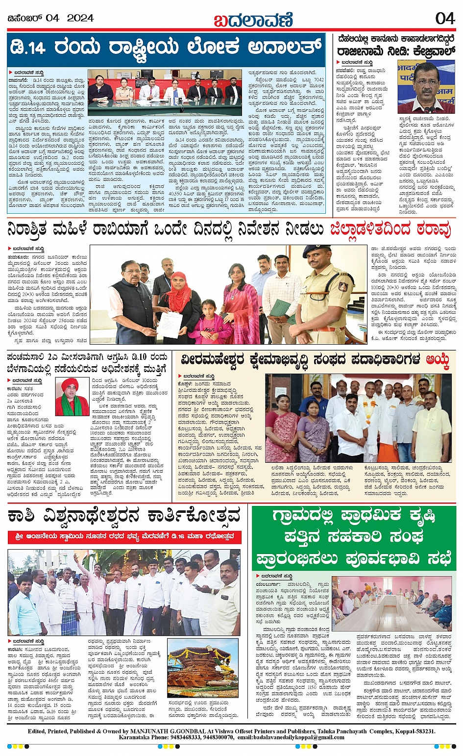 ಬದಲಾವಣೆ 04 DEC 2024 Page: 4 December 04, 2024 << First << 4 >> Last >> Page 1Page 2Page 3Page 4 × ಬದಲಾವಣೆ 04 DEC 2024 page-1page-2page-3page-4 << First << 4 >> Last >> page-1page-2page-3page-4 page-4