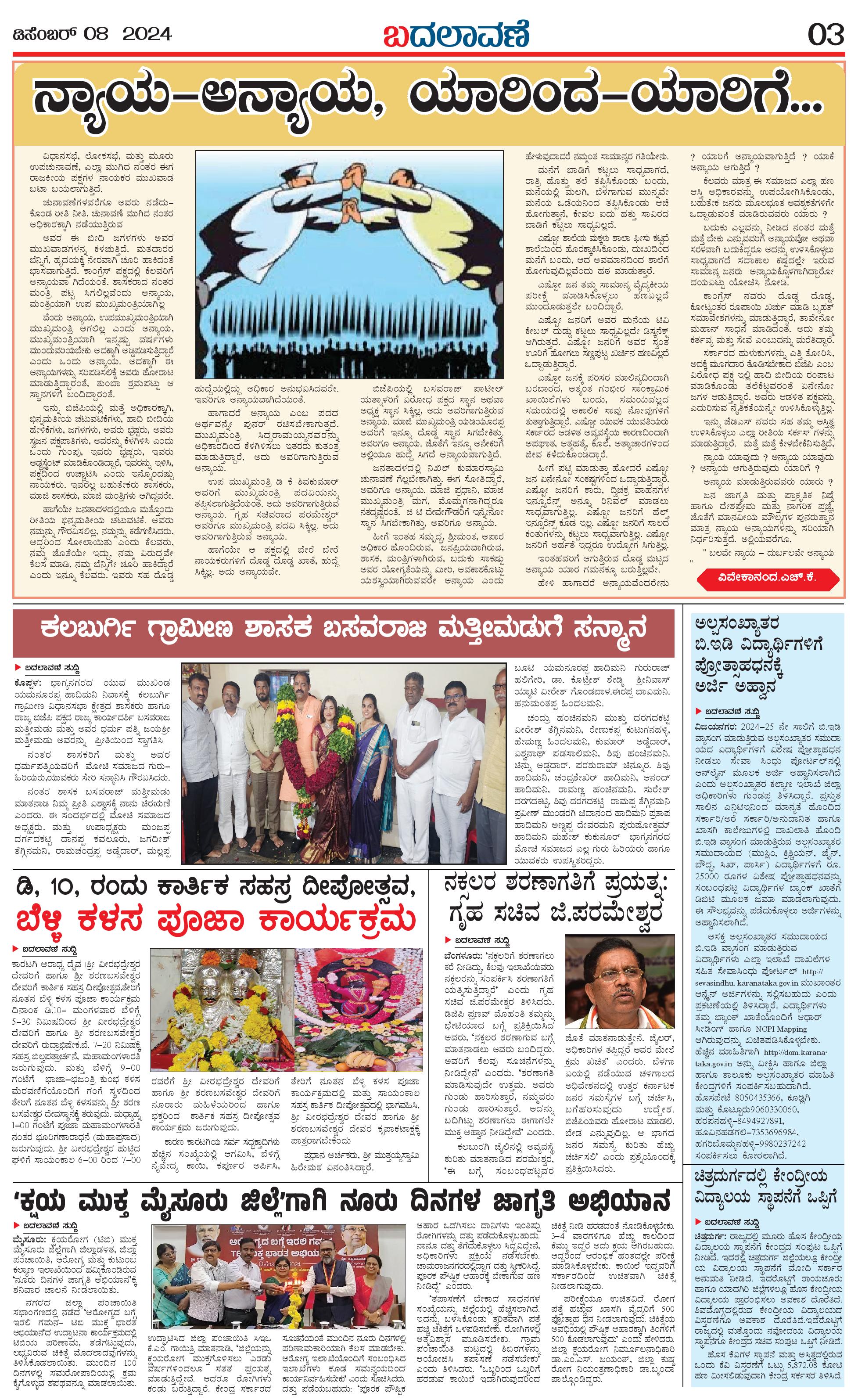 ಬದಲಾವಣೆ 08 DEC 2024 Page: 3 December 08, 2024 << First << 3 >> Last >> Page 1Page 2Page 3Page 4 × ಬದಲಾವಣೆ 08 DEC 2024 page-1page-2page-3page-4 << First << 3 >> Last >> page-1page-2page-3page-4 page-3