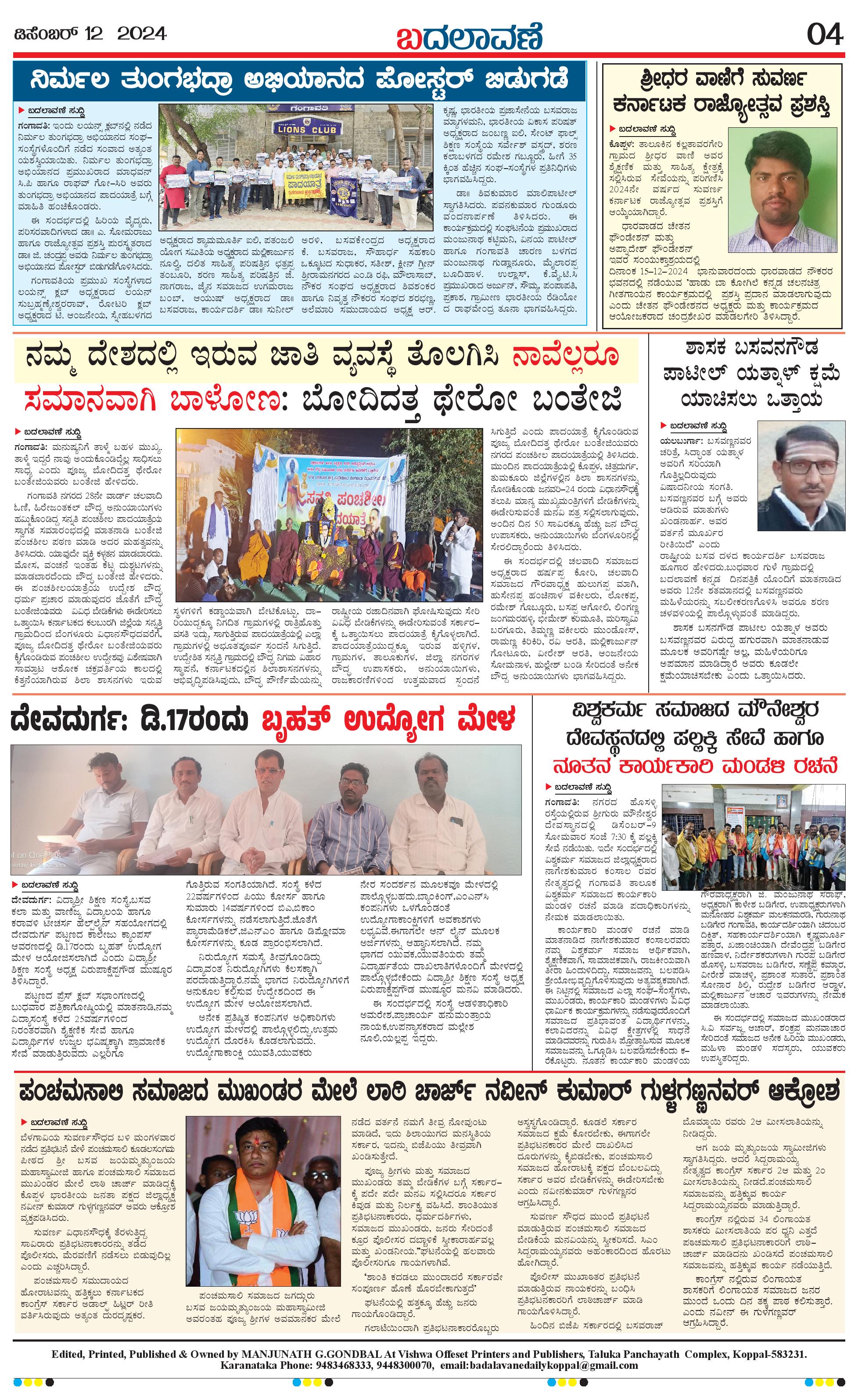 ಬದಲಾವಣೆ 12 DEC 2024 Page: 4 December 12, 2024 << First << 4 >> Last >> Page 1Page 2Page 3Page 4 × ಬದಲಾವಣೆ 12 DEC 2024 page-1page-2page-3page-4 << First << 4 >> Last >> page-1page-2page-3page-4 page-4