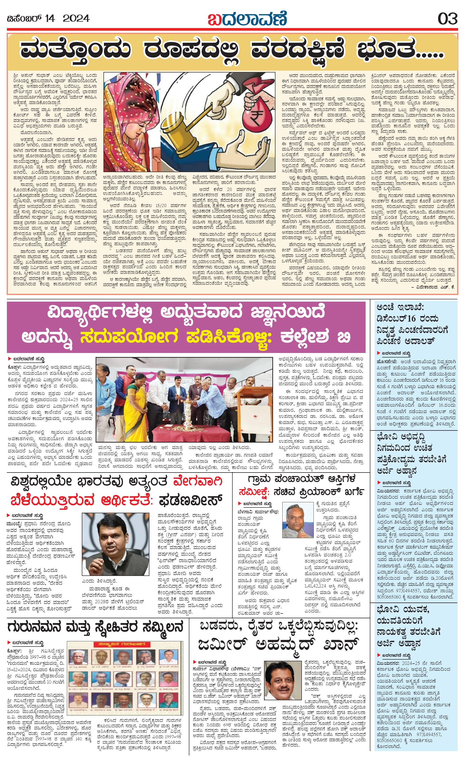 ಬದಲಾವಣೆ 14 DEC 2024 Page: 3 December 14, 2024 << First << 3 >> Last >> Page 1Page 2Page 3Page 4 × ಬದಲಾವಣೆ 14 DEC 2024 page-1page-2page-3page-4 << First << 3 >> Last >> page-1page-2page-3page-4 page-3