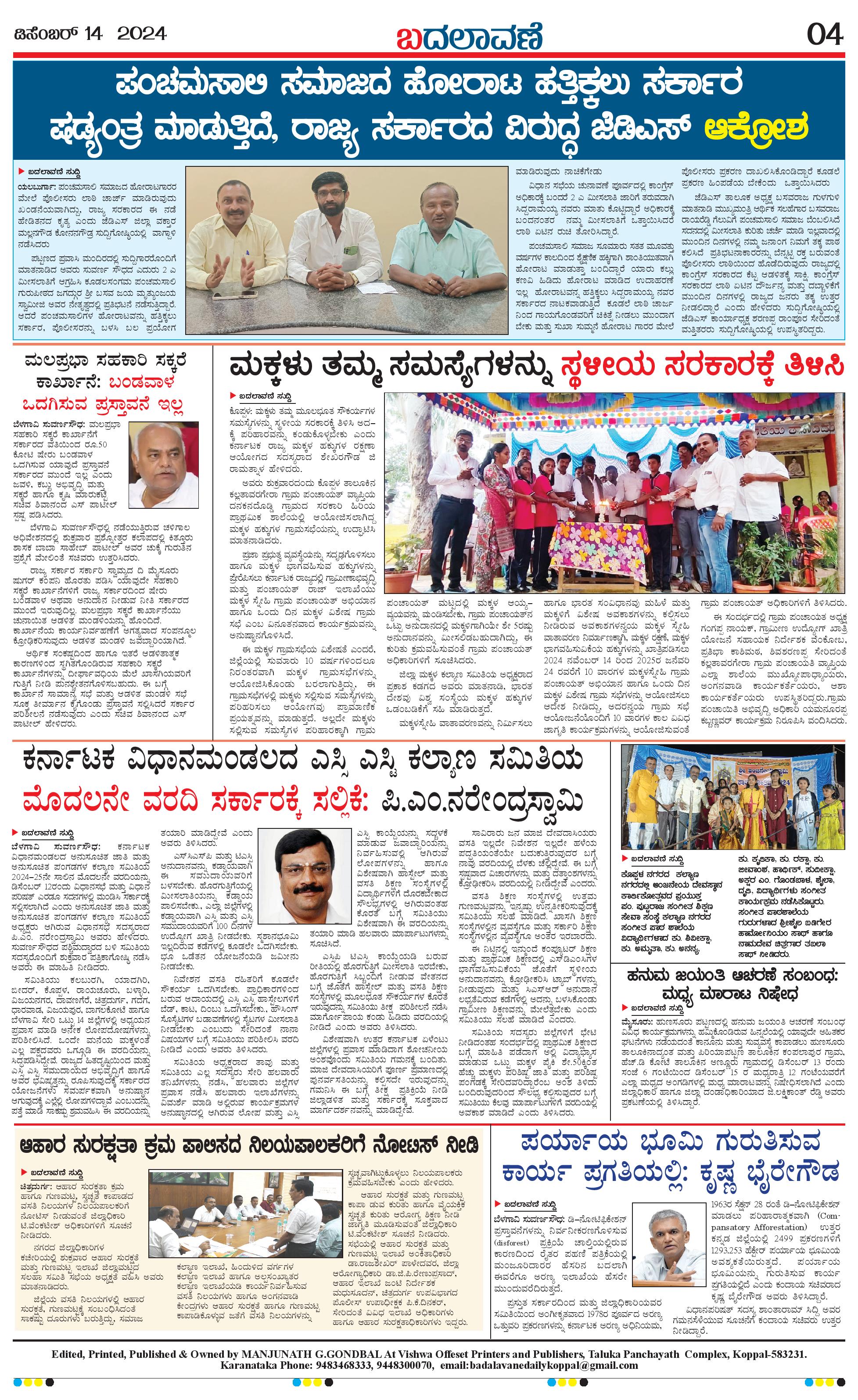 ಬದಲಾವಣೆ 14 DEC 2024 Page: 4 December 14, 2024 << First << 4 >> Last >> Page 1Page 2Page 3Page 4 × ಬದಲಾವಣೆ 14 DEC 2024 page-1page-2page-3page-4 << First << 4 >> Last >> page-1page-2page-3page-4 page-4