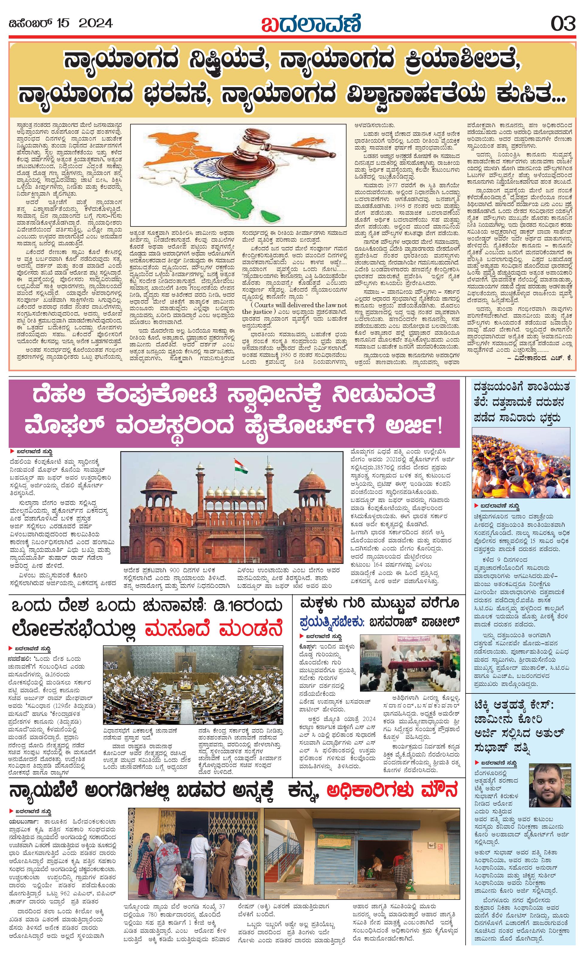ಬದಲಾವಣೆ 15 DEC 2024 Page: 3 December 15, 2024 << First << 3 >> Last >> Page 1Page 2Page 3Page 4 × ಬದಲಾವಣೆ 15 DEC 2024 page-1page-2page-3page-4 << First << 3 >> Last >> page-1 page-2page-3page-4 page-3