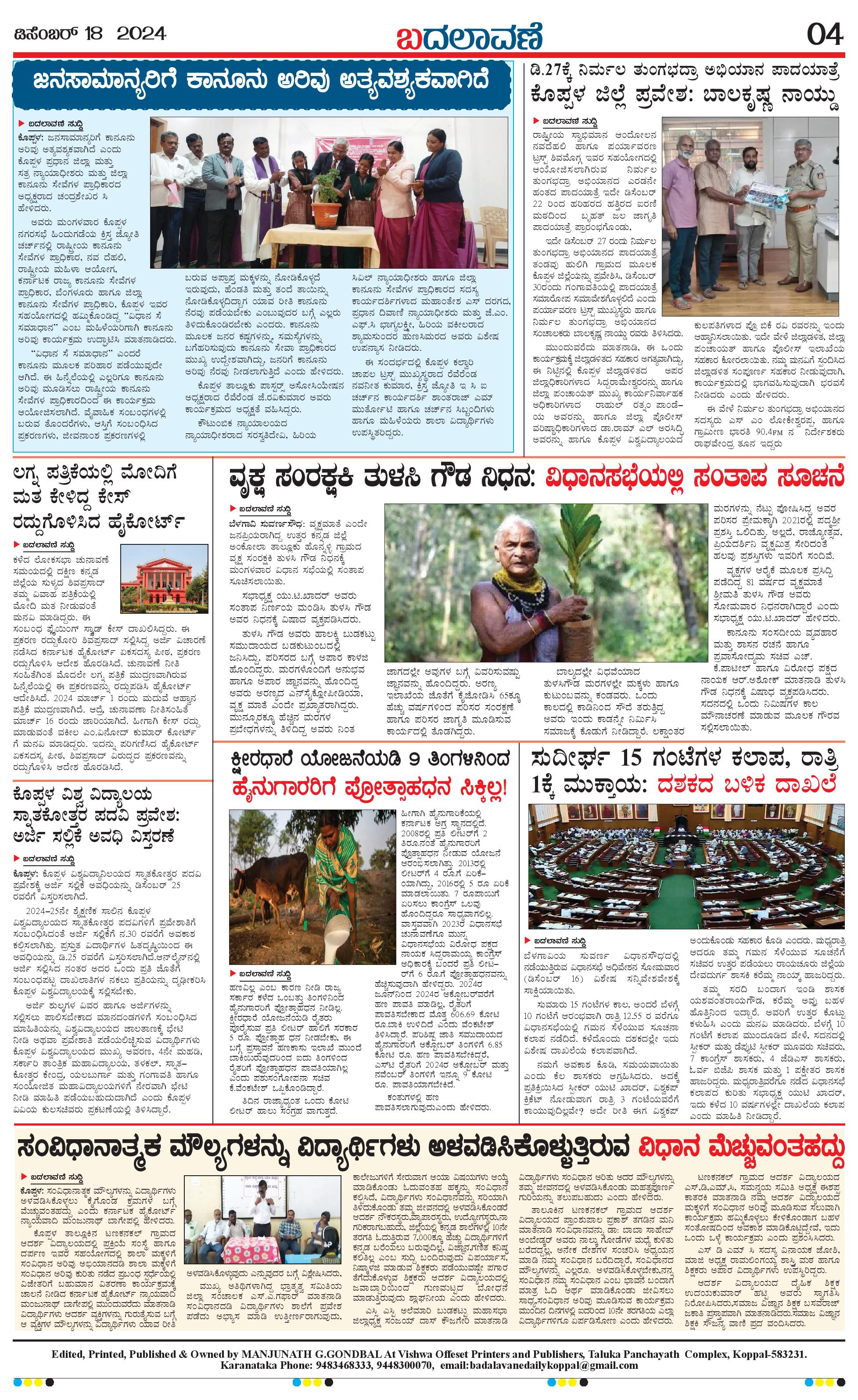 ಬದಲಾವಣೆ 18 DEC 2024 Page: 4 December 18, 2024 << First << 4 >> Last >> Page 1Page 2Page 3Page 4 × ಬದಲಾವಣೆ 18 DEC 2024 page-1page-2page-3page-4 << First << 4 >> Last >> page-1page-2page-3page-4 page-4
