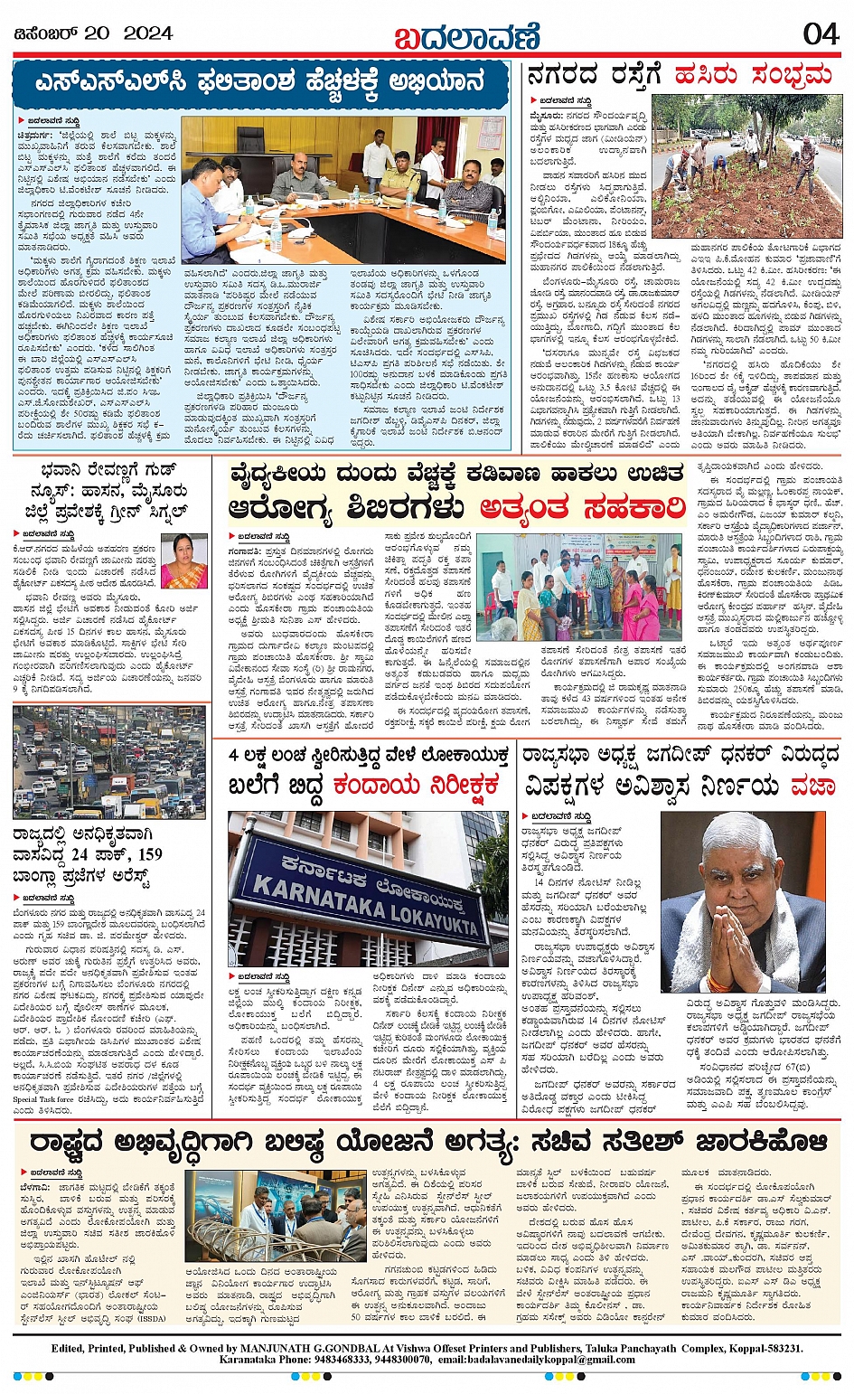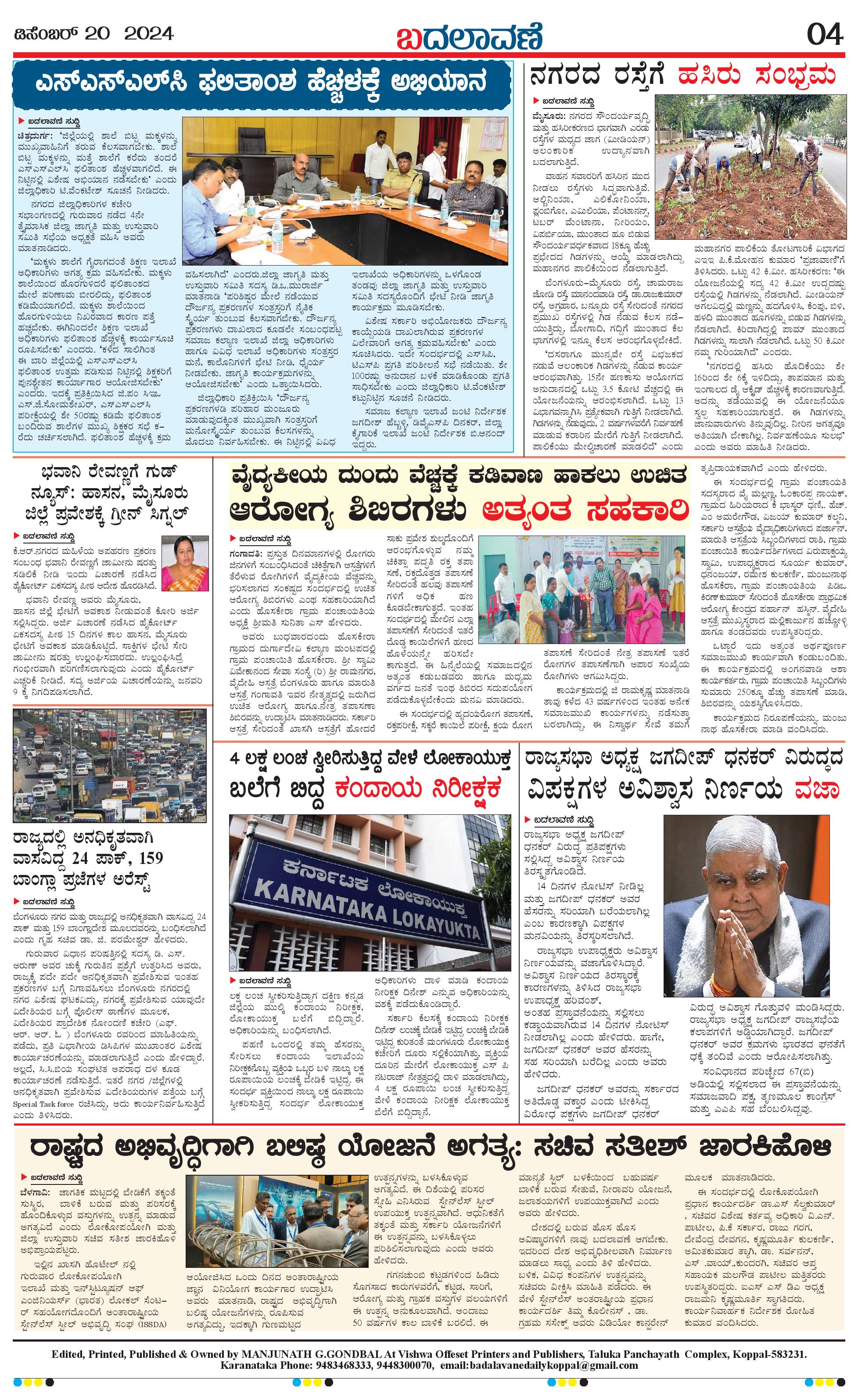 ಬದಲಾವಣೆ 20 DEC 2024 Page: 4 December 20, 2024 << First << 4 >> Last >> Page 1Page 2Page 3Page 4 × ಬದಲಾವಣೆ 20 DEC 2024 page-1page-2page-3page-4 << First << 4 >> Last >> page-1page-2page-3page-4 page-4
