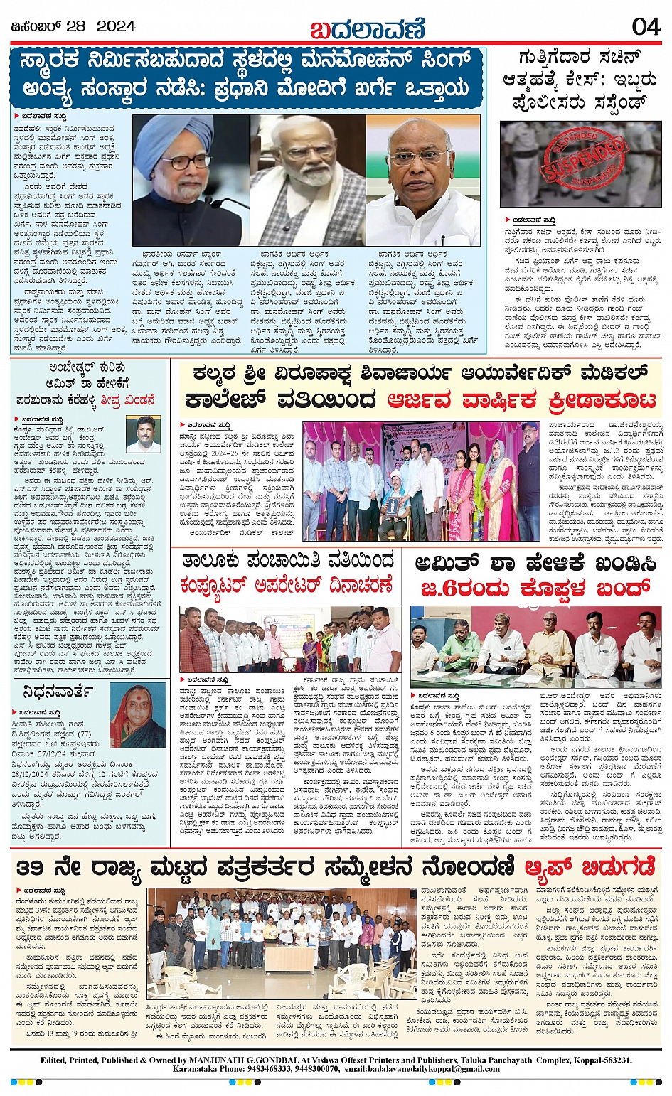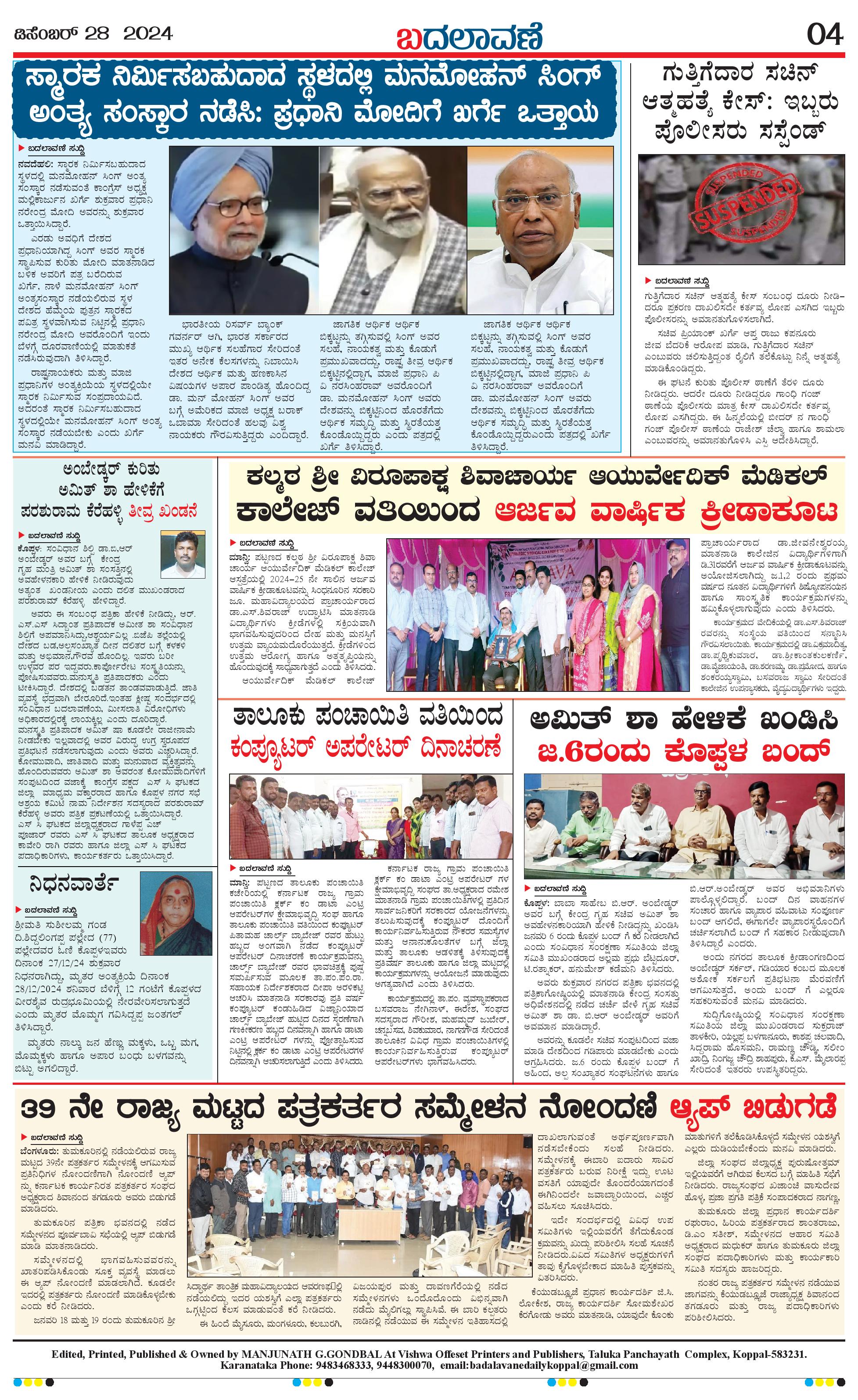 ಬದಲಾವಣೆ 28 DEC 2024 Page: 4 December 28, 2024 << First << 4 >> Last >> Page 1Page 2Page 3Page 4 × ಬದಲಾವಣೆ 28 DEC 2024 page-1page-2page-3page-4 << First << 4 >> Last >> page-1page-2page-3page-4 page-4