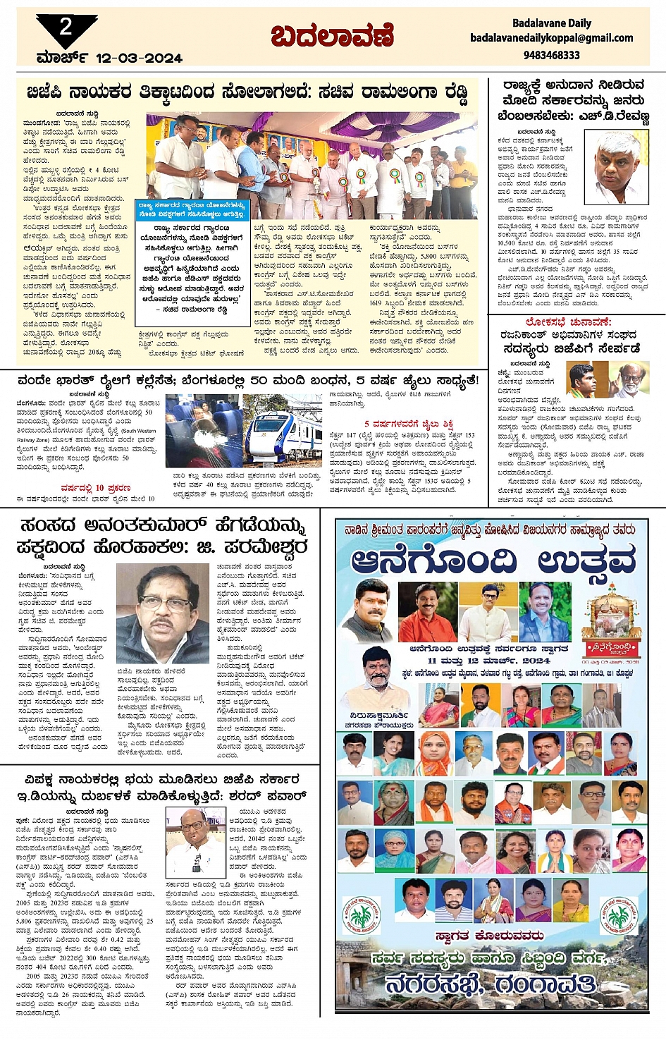 ಬದಲಾವಣೆ 12Mar 2024 Page: 2 March 12, 2024 << First << 2 >> Last >> Page 1Page 2Page 3Page 4 × ಬದಲಾವಣೆ 12Mar 2024 page-1page-2page-3page-4 << First << 2 >> Last >> page-1page-2page-3page-4 page-2