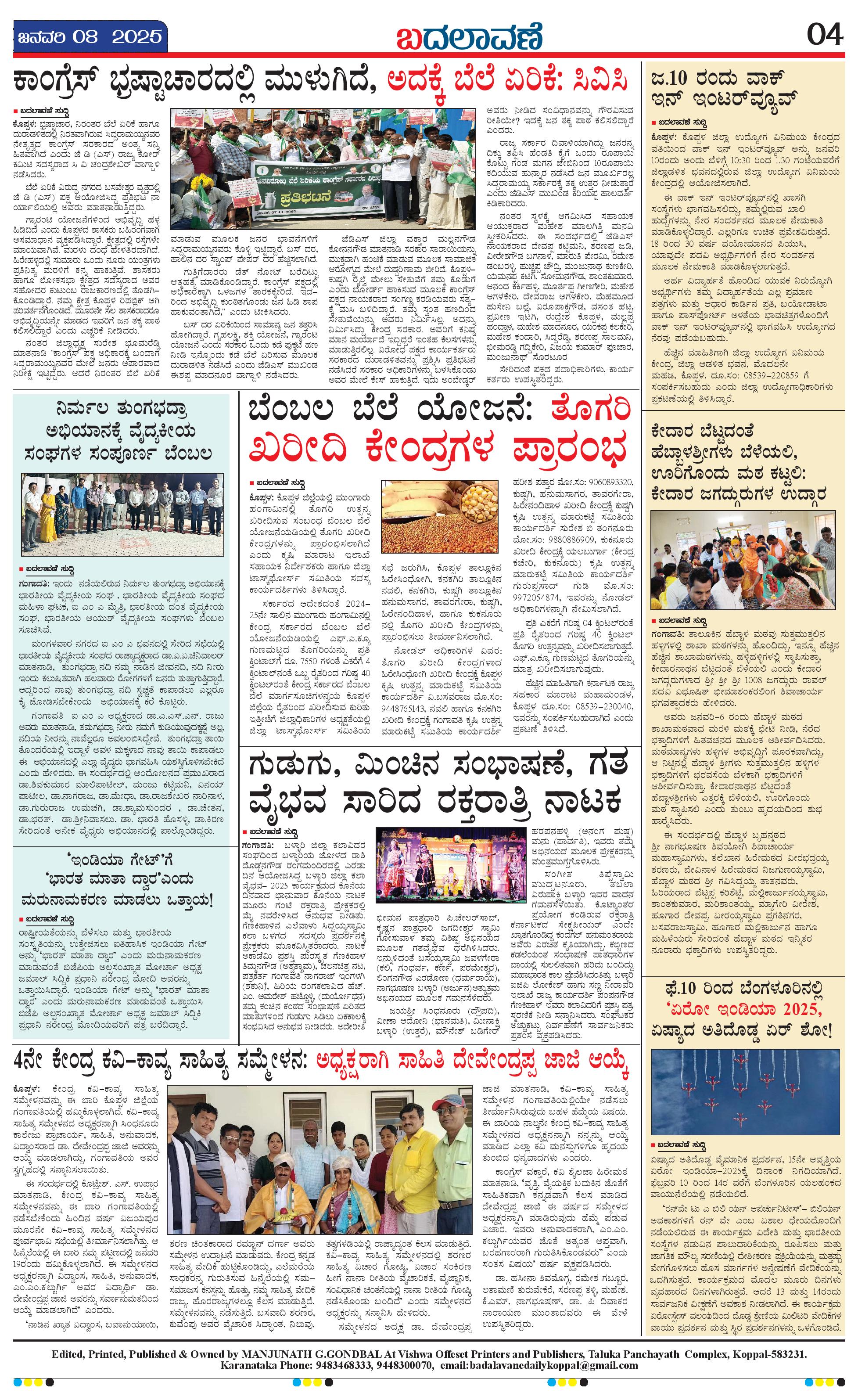 ಬದಲಾವಣೆ 08 JAN 2025 Page: 4 January 08, 2025 << First << 4 >> Last >> Page 1Page 2Page 3Page 4 × ಬದಲಾವಣೆ 08 JAN 2025 page-1page-2page-3page-4 << First << 4 >> Last >> page-1page-2page-3page-4 page-4