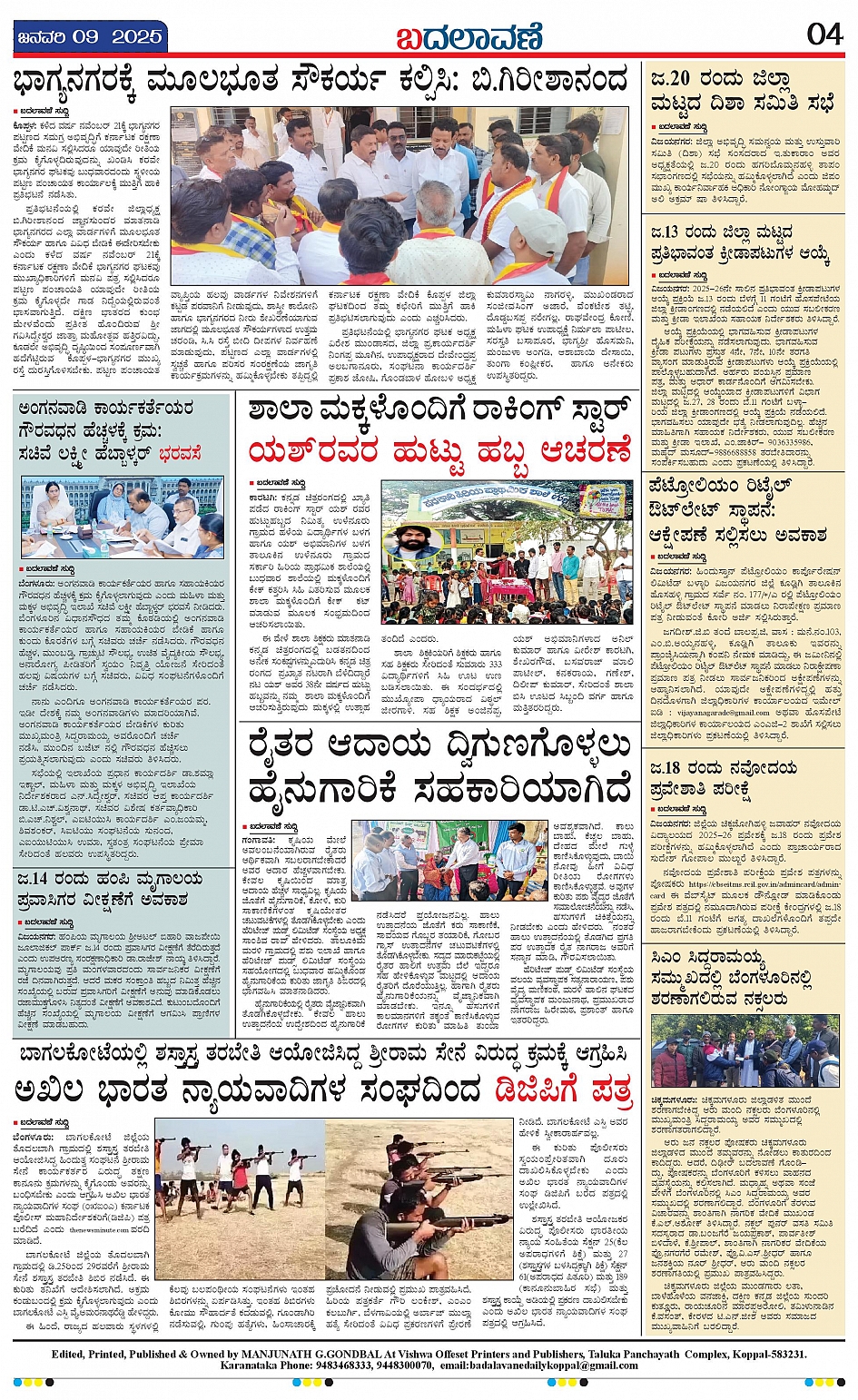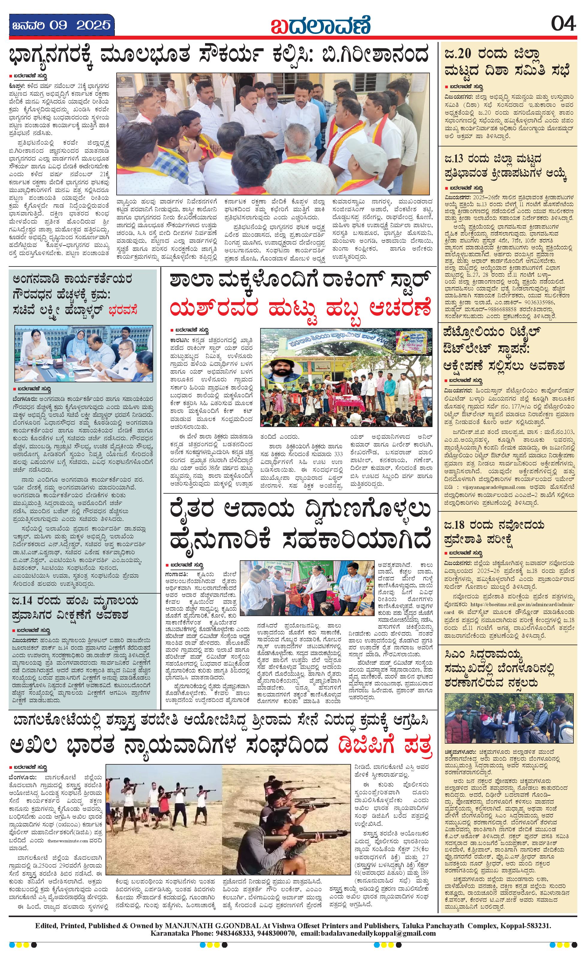 ಬದಲಾವಣೆ 09 JAN 2025 Page: 4 January 09, 2025 << First << 4 >> Last >> Page 1Page 2Page 3Page 4 × ಬದಲಾವಣೆ 09 JAN 2025 page-1page-2page-3page-4 << First << 4 >> Last >> page-1page-2page-3page-4 page-4