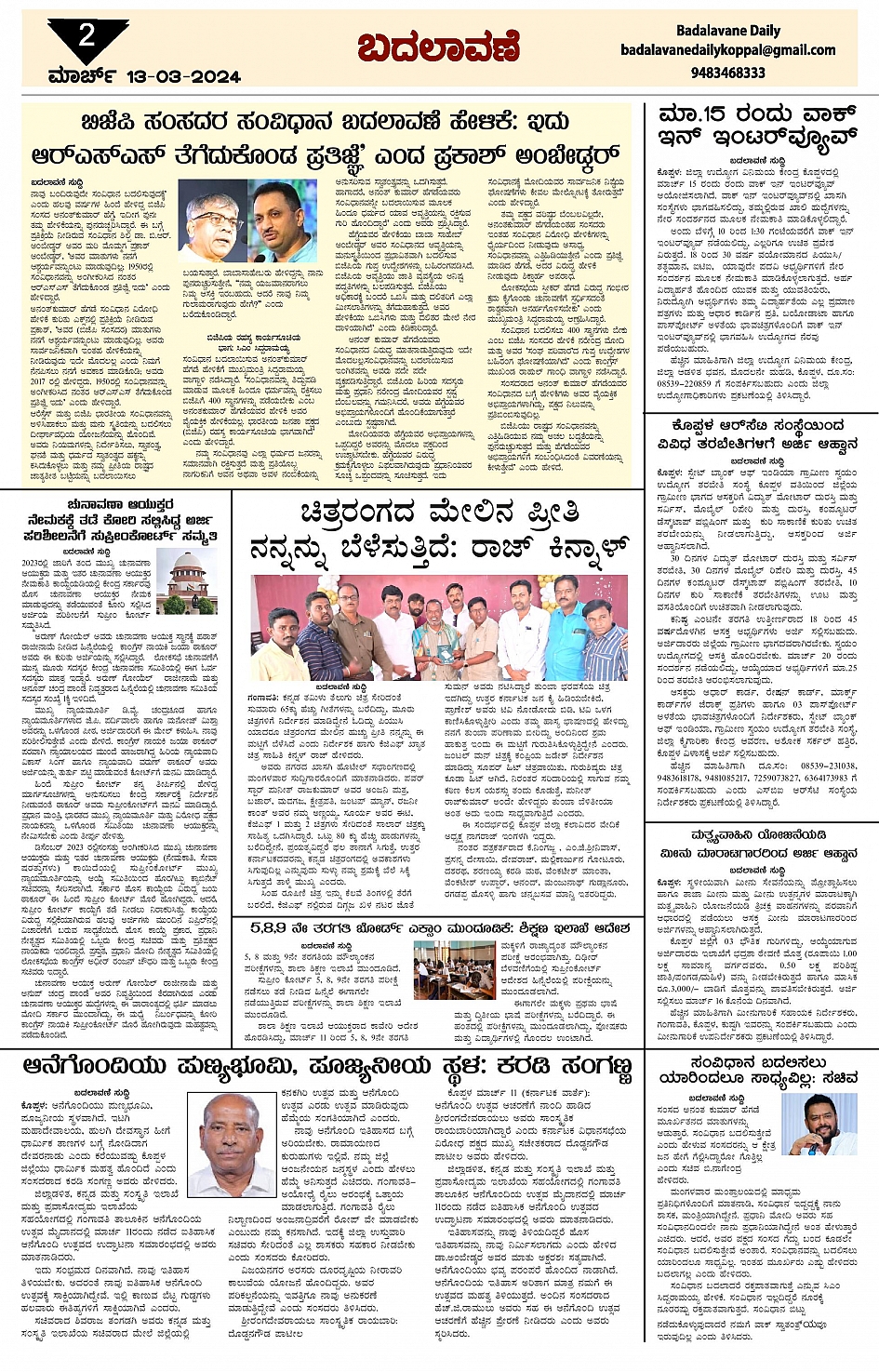 ಬದಲಾವಣೆ 13Mar 2024 Page: 2 March 13, 2024 << First << 2 >> Last >> Page 1Page 2Page 3Page 4 × ಬದಲಾವಣೆ 13Mar 2024 page-1page-2page-3page-4 << First << 2 >> Last >> page-1page-2page-3page-4 page-2