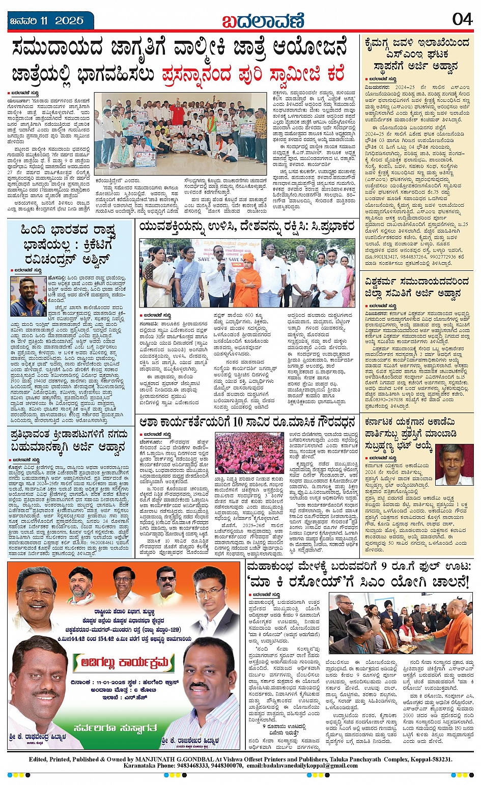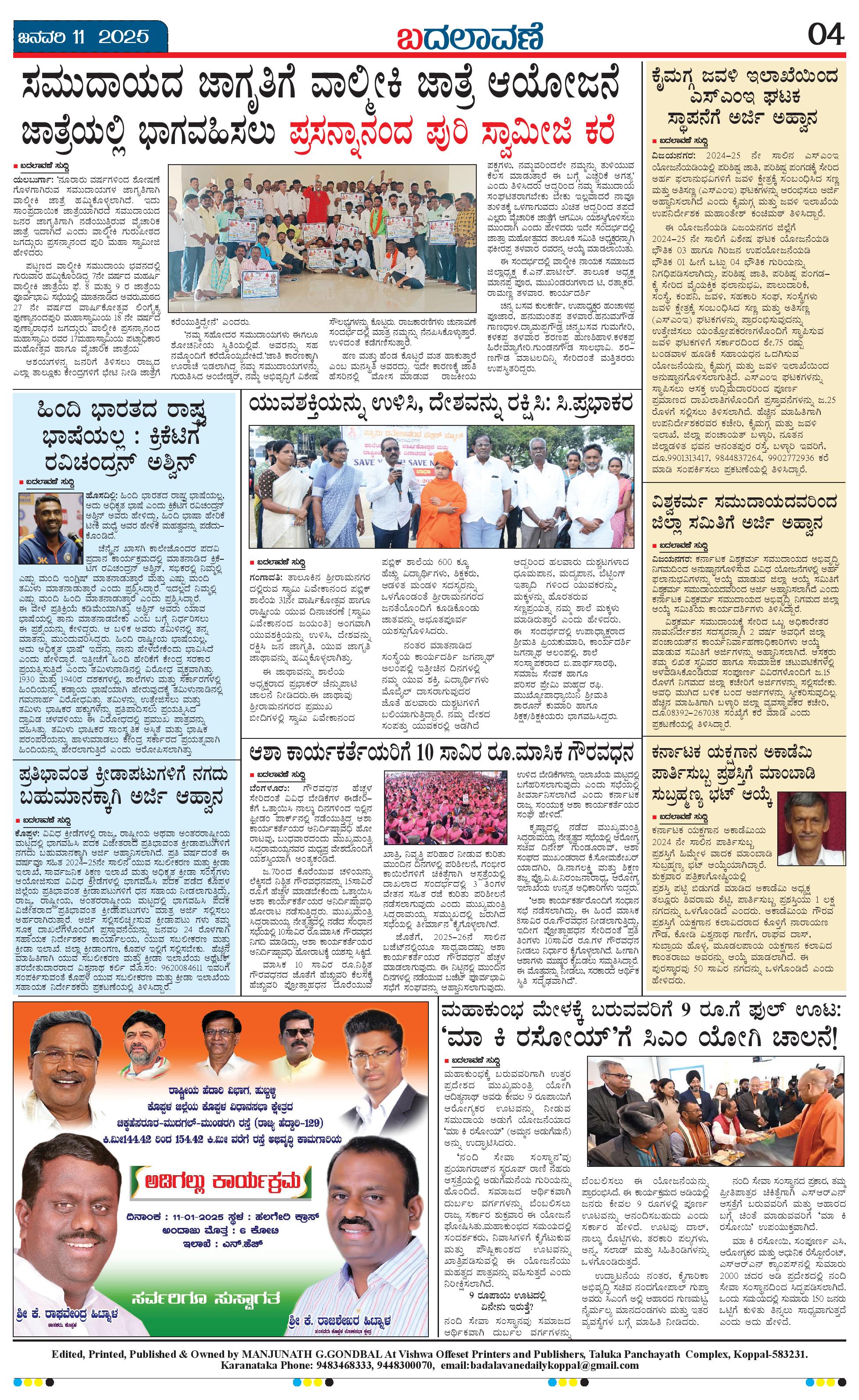 ಬದಲಾವಣೆ 11 JAN 2025 Page: 4 January 11, 2025 << First << 4 >> Last >> Page 1Page 2Page 3Page 4 × ಬದಲಾವಣೆ 11 JAN 2025 page-1page-2page-3page-4 << First << 4 >> Last >> page-1page-2page-3page-4 page-4
