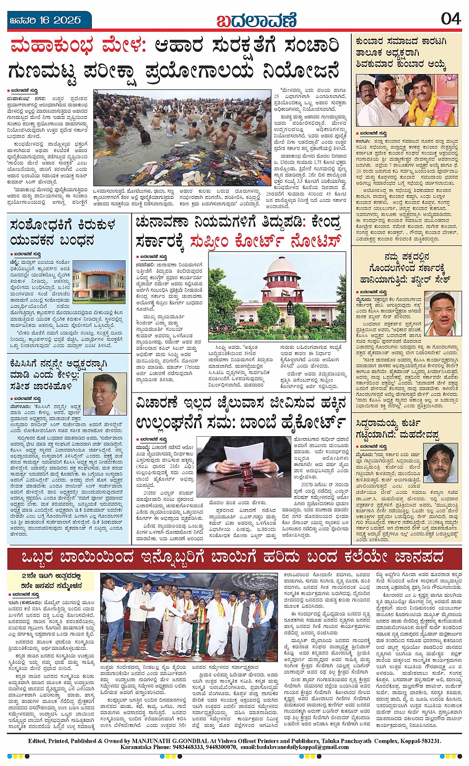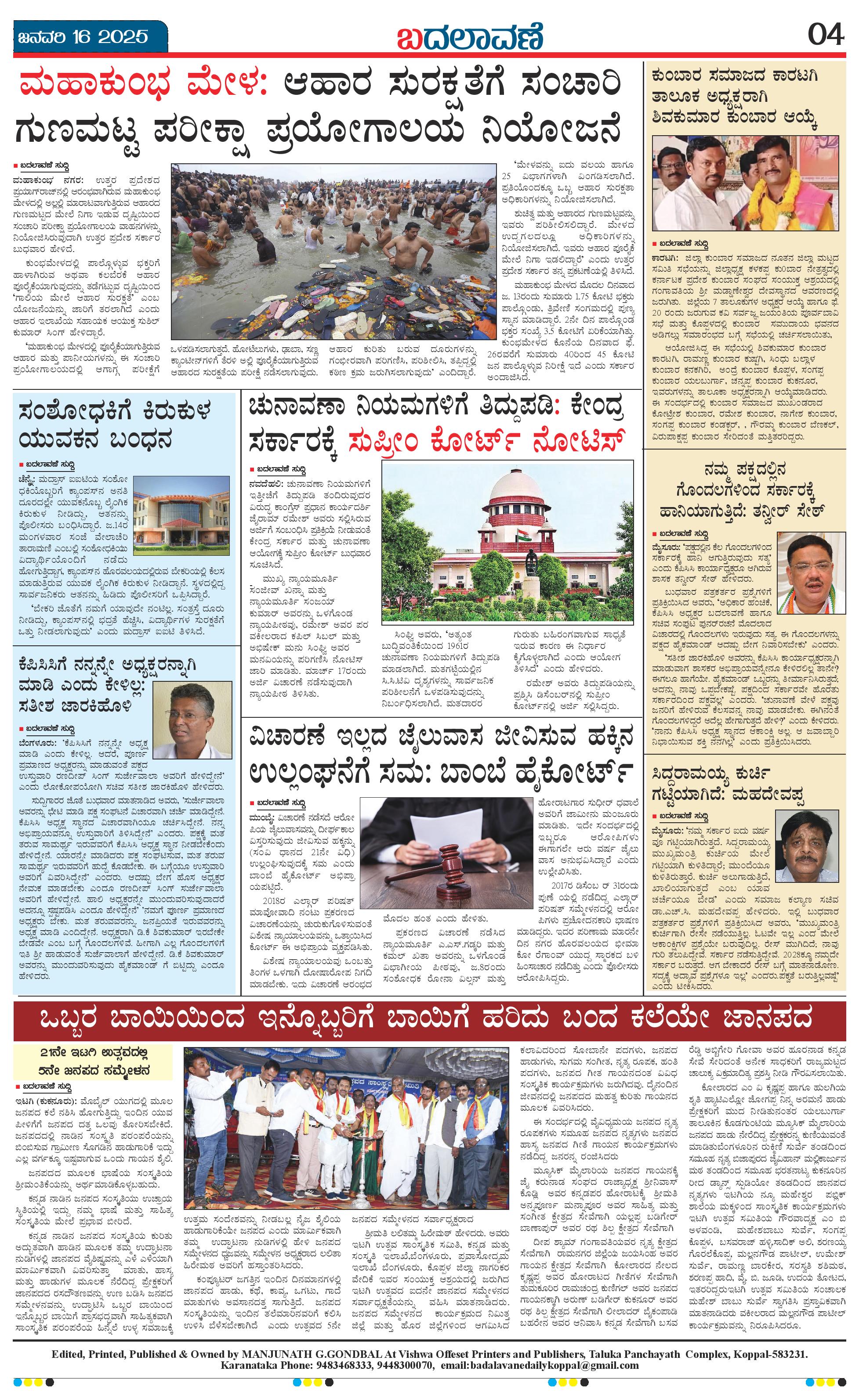 ಬದಲಾವಣೆ 16 JAN 2025 Page: 4 January 16, 2025 << First << 4 >> Last >> Page 1Page 2Page 3Page 4 × ಬದಲಾವಣೆ 16 JAN 2025 page-1page-2page-3page-4 << First << 4 >> Last >> page-1page-2page-3page-4 page-4