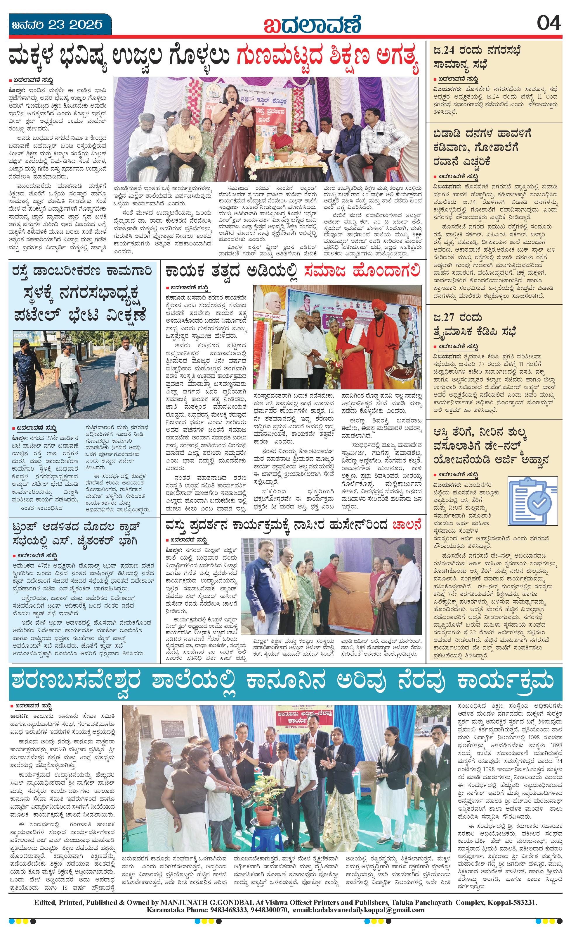 ಬದಲಾವಣೆ 23 JAN 2025 Page: 4 January 23, 2025 << First << 4 >> Last >> Page 1Page 2Page 3Page 4 × ಬದಲಾವಣೆ 23 JAN 2025 page-1page-2page-3page-4 << First << 4 >> Last >> page-1page-2page-3page-4 page-4