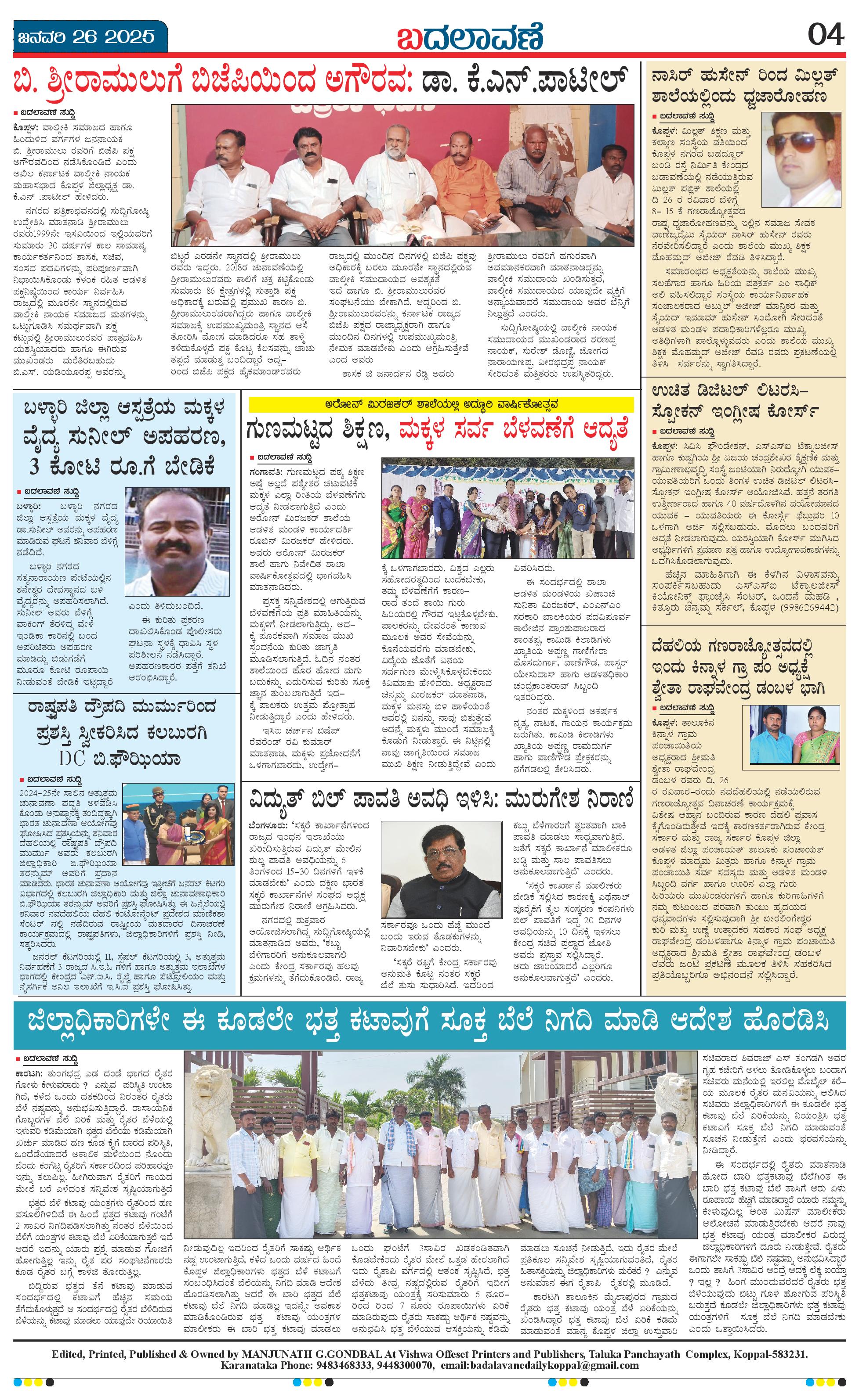 ಬದಲಾವಣೆ 26 JAN 2025 Page: 4 January 26, 2025 << First << 4 >> Last >> Page 1Page 2Page 3Page 4 × ಬದಲಾವಣೆ 26 JAN 2025 page-1page-2page-3page-4 << First << 4 >> Last >> page-1page-2page-3page-4 page-4