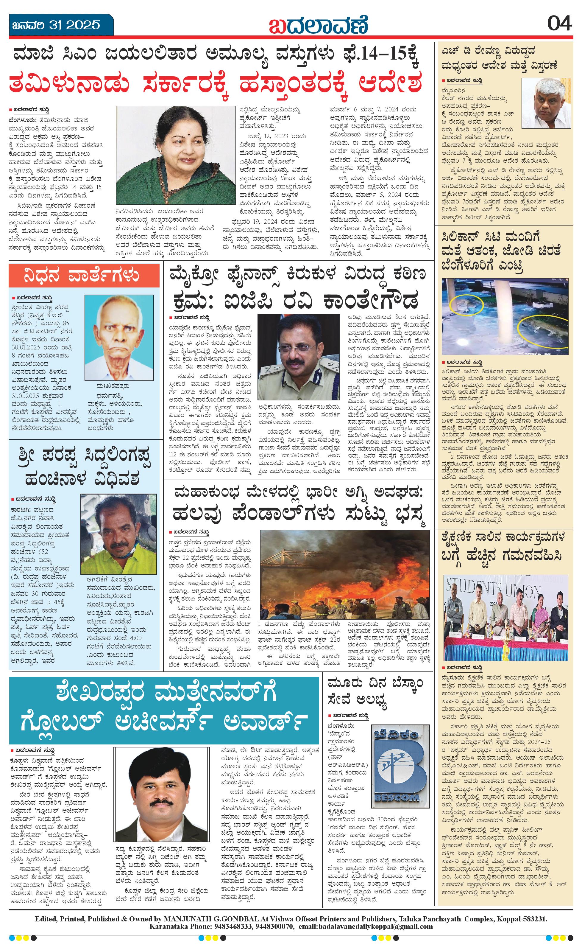ಬದಲಾವಣೆ 31 JAN 2025 Page: 4 January 31, 2025 << First << 4 >> Last >> Page 1Page 2Page 3Page 4 × ಬದಲಾವಣೆ 31 JAN 2025 page-1page-2page-3page-4 << First << 4 >> Last >> page-1page-2page-3page-4 page-4