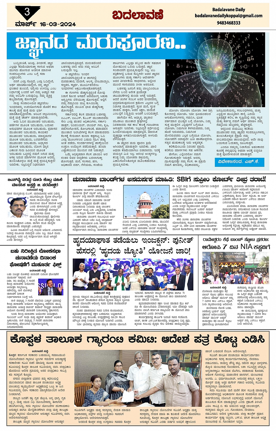 ಬದಲಾವಣೆ 16Mar 2024 Page: 3 March 16, 2024 << First << 3 >> Last >> Page 1Page 2Page 3Page 4 × ಬದಲಾವಣೆ 16Mar 2024 page-1page-2page-3page-4 << First << 3 >> Last >> page-1page-2page-3page-4 page-3