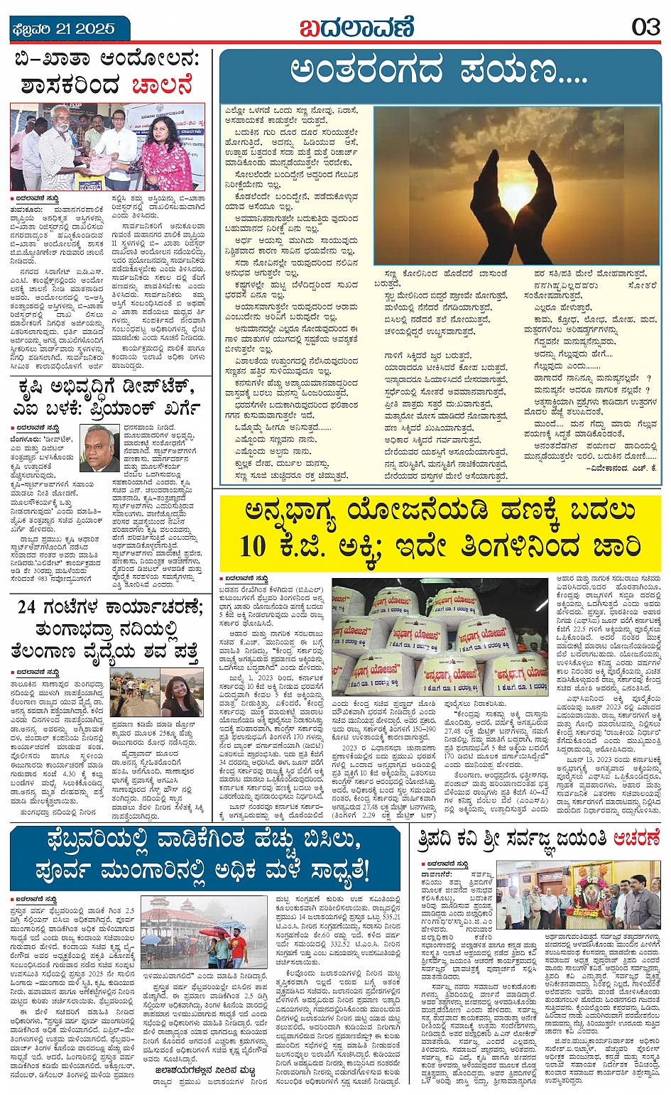 ಬದಲಾವಣೆ 21 FEB 2025 Page: 3 February 21, 2025 << First << 3 >> Last >> Page 1Page 2Page 3Page 4 × ಬದಲಾವಣೆ 21 FEB 2025 page-1page-2page-3page-4 << First << 3 >> Last >> page-1page-2page-3page-4 page-3