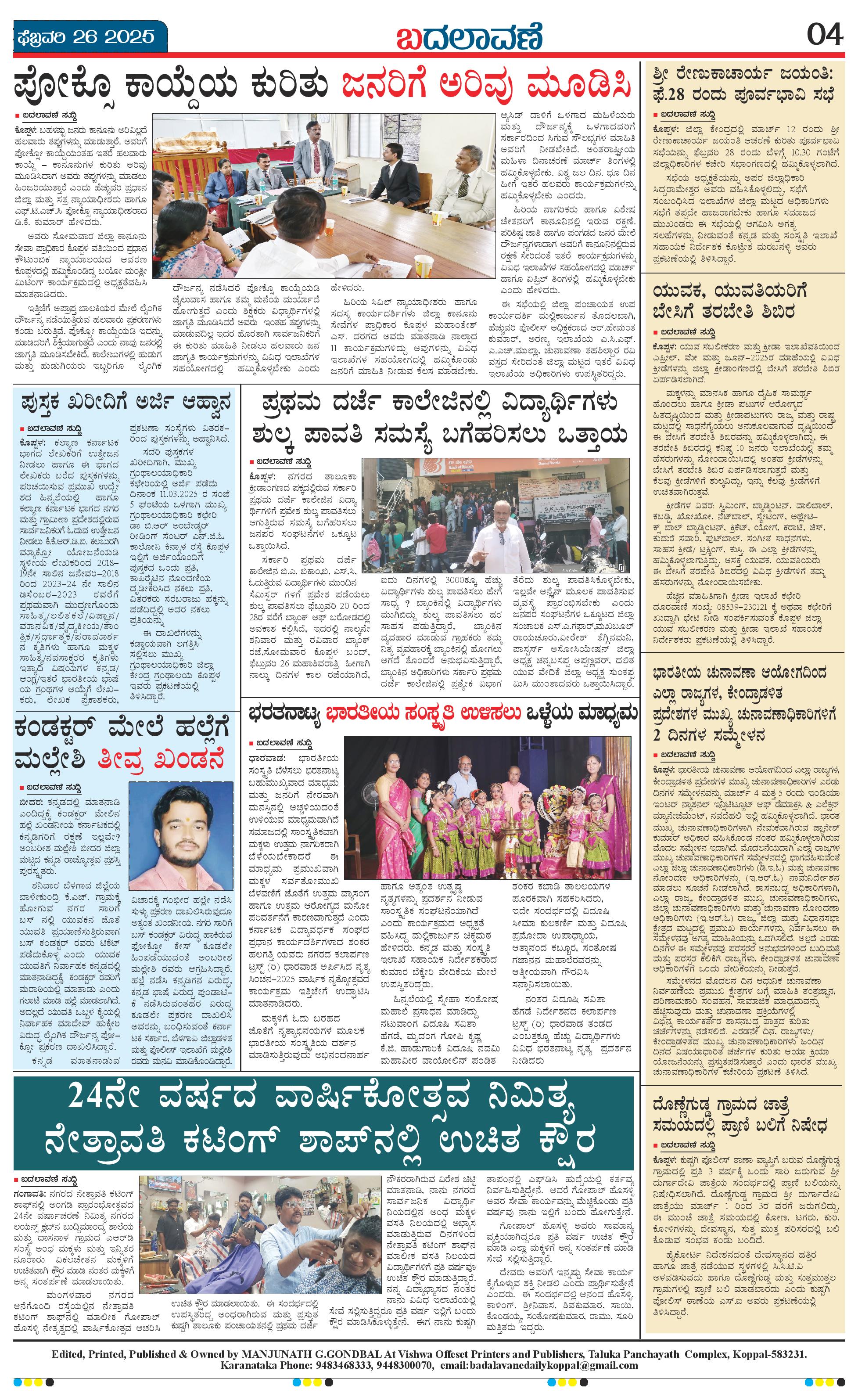ಬದಲಾವಣೆ 26 FEB 2025 Page: 4 February 26, 2025 << First << 4 >> Last >> Page 1Page 2Page 3Page 4 × ಬದಲಾವಣೆ 26 FEB 2025 page-1page-2page-3page-4 << First << 4 >> Last >> page-1page-2page-3page-4 page-4
