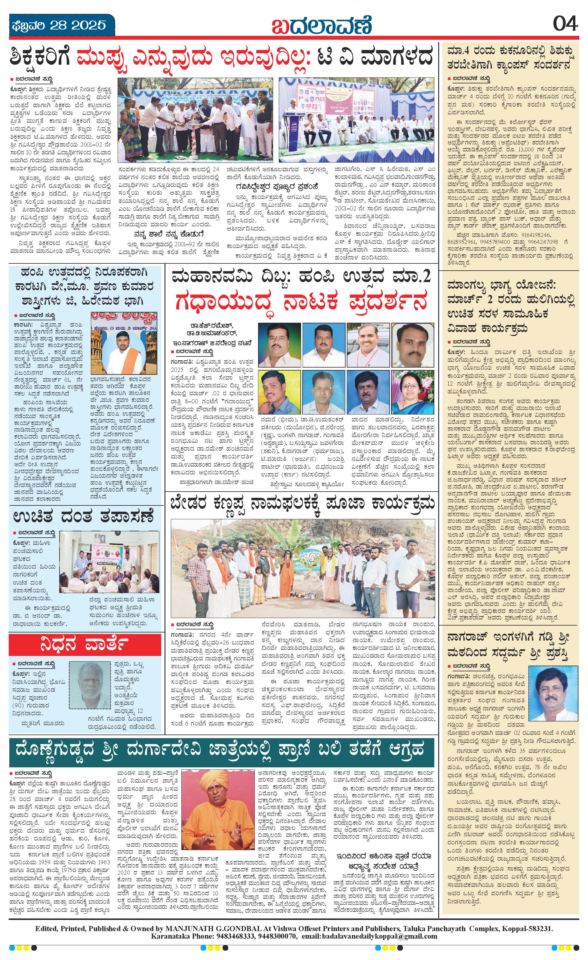 ಬದಲಾವಣೆ 28 FEB 2025 Page: 4 February 28, 2025 << First << 4 >> Last >> Page 1Page 2Page 3Page 4 × ಬದಲಾವಣೆ 28 FEB 2025 page-1page-2page-3page-4 << First << 4 >> Last >> page-1page-2page-3page-4 page-4