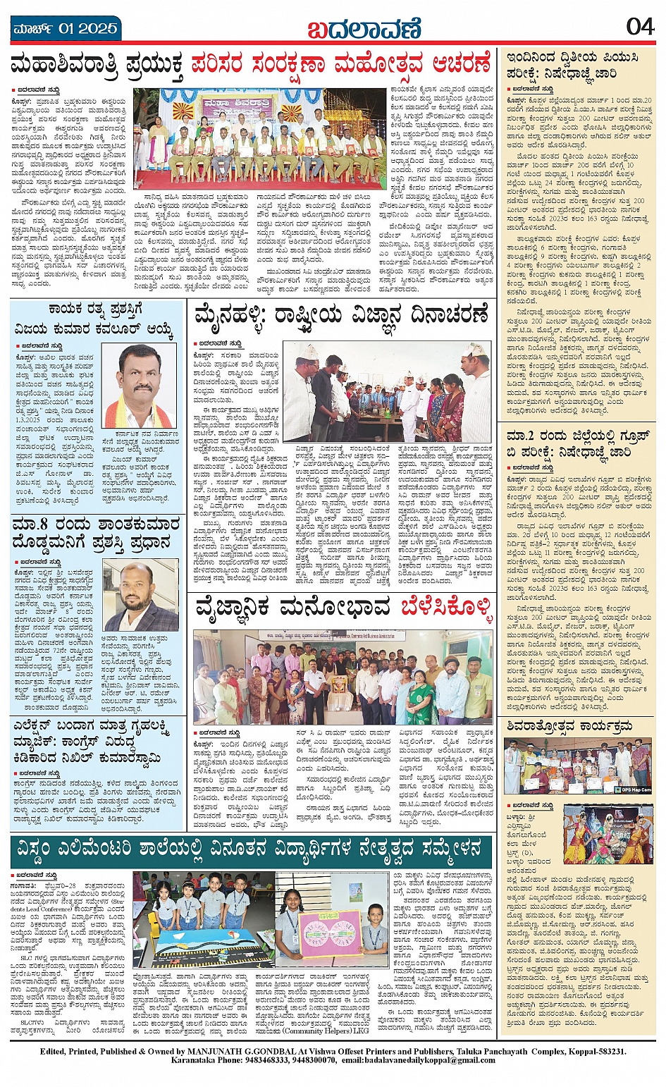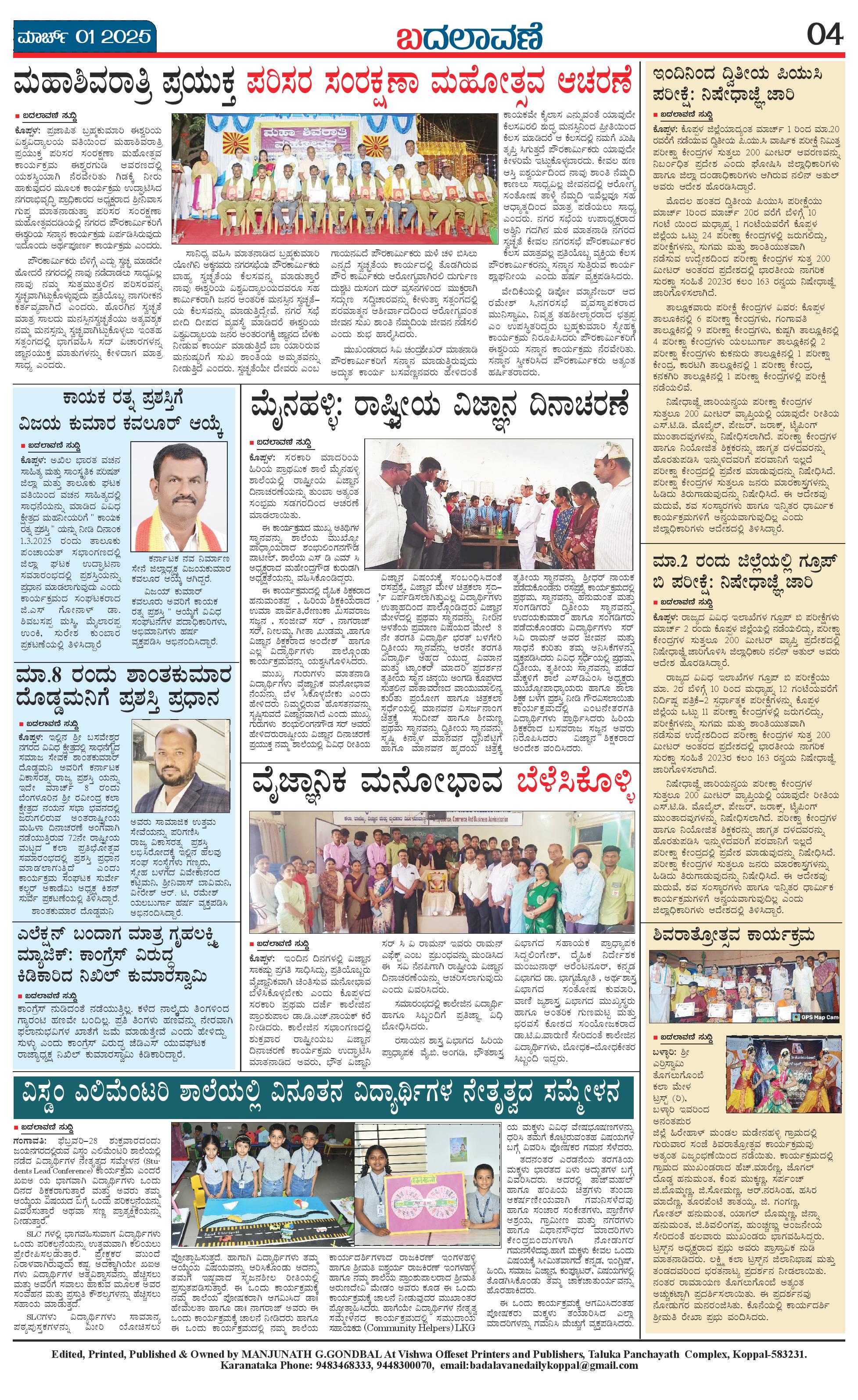 ಬದಲಾವಣೆ 01 MAR 2025 Page: 4 March 01, 2025 << First << 4 >> Last >> Page 1Page 2Page 3Page 4 × ಬದಲಾವಣೆ 01 MAR 2025 page-1page-2page-3page-4 << First << 4 >> Last >> page-1page-2page-3page-4 page-4