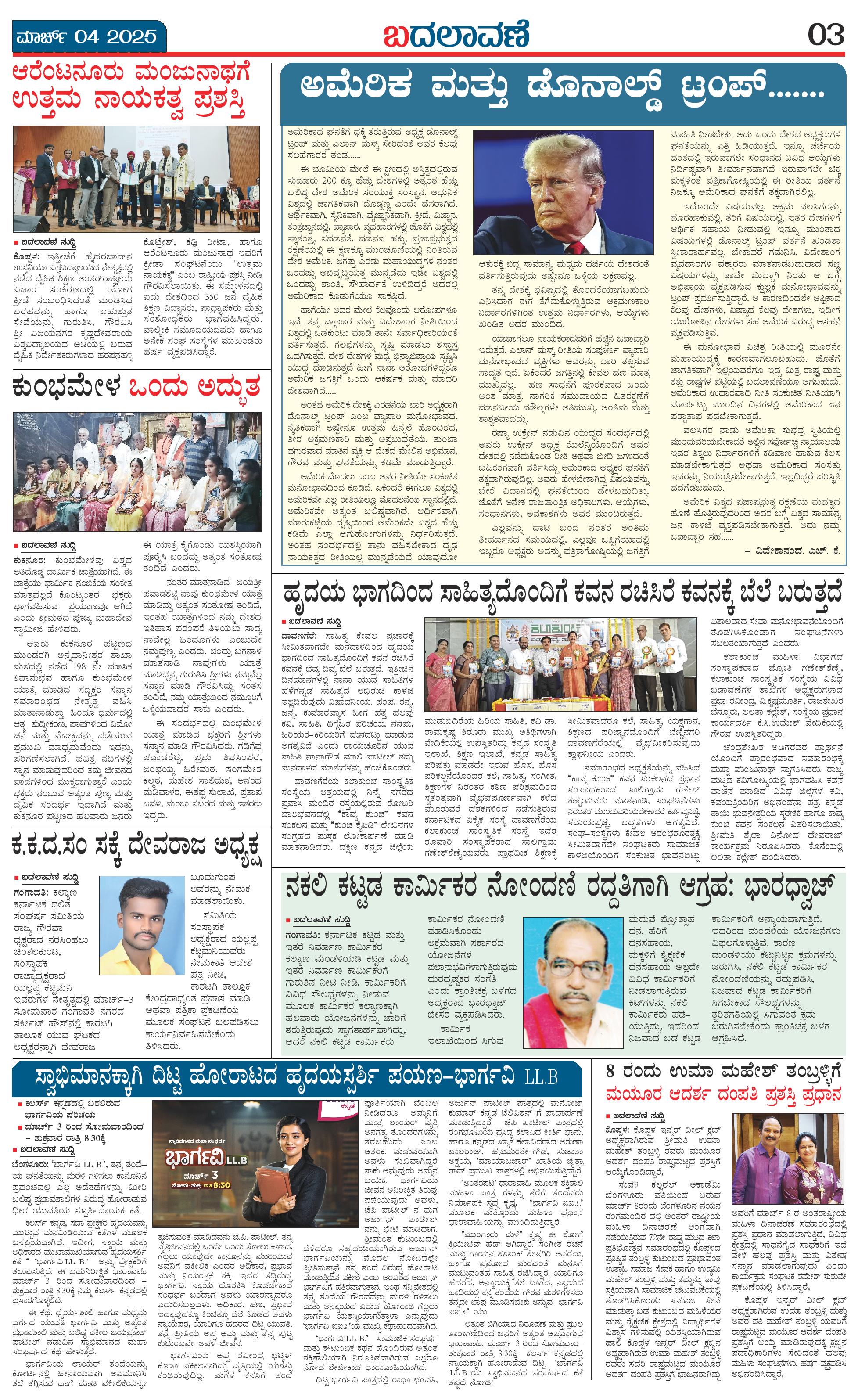 ಬದಲಾವಣೆ 04 MAR 2025 Page: 3 March 04, 2025 << First << 3 >> Last >> Page 1Page 2Page 3Page 4 × ಬದಲಾವಣೆ 04 MAR 2025 page-1page-2page-3page-4 << First << 3 >> Last >> page-1page-2page-3page-4 page-3