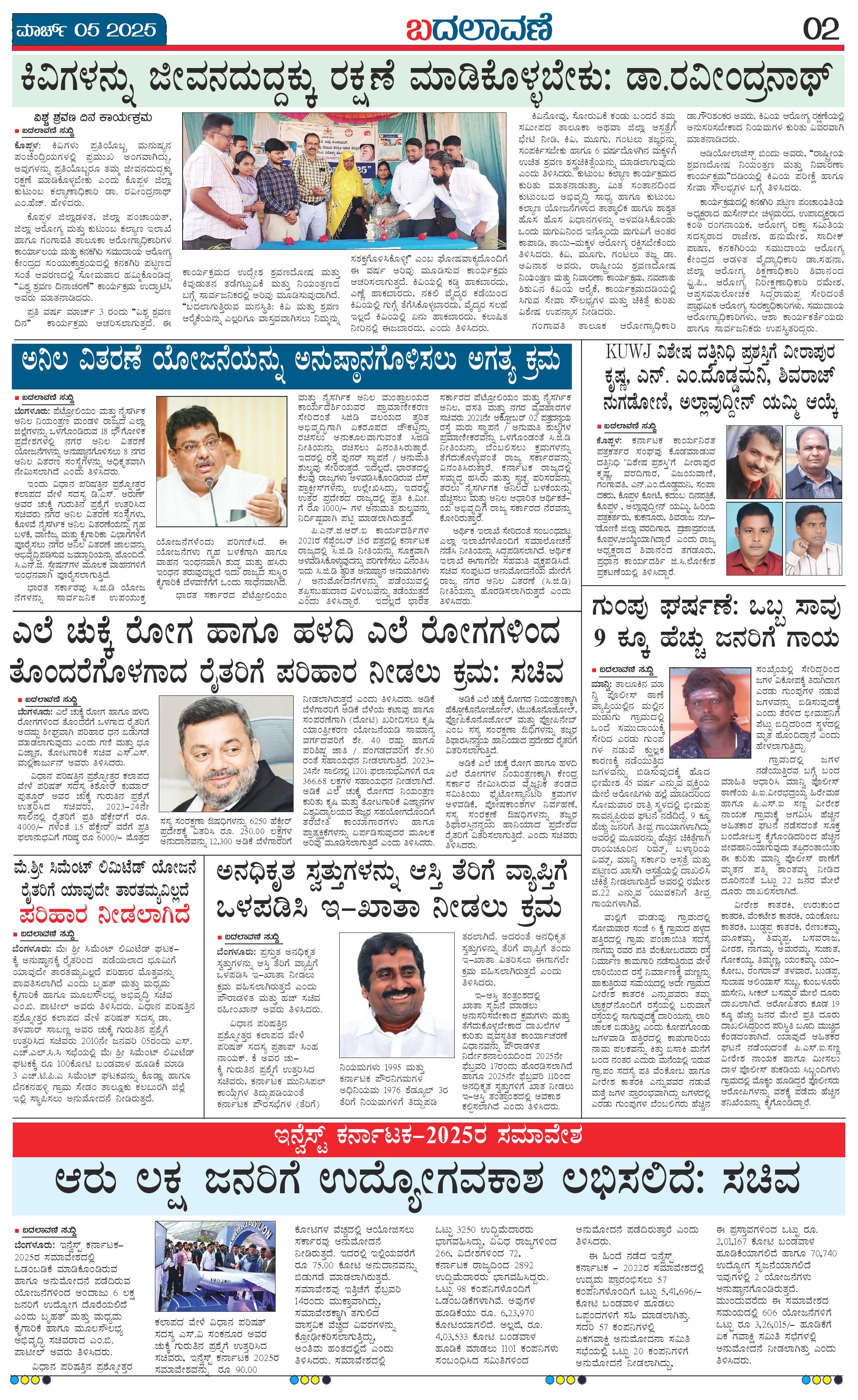 ಬದಲಾವಣೆ 05 MAR 2025 Page: 2 March 05, 2025 << First << 2 >> Last >> Page 1Page 2Page 3Page 4 × ಬದಲಾವಣೆ 05 MAR 2025 page-1page-2page-3page-4 << First << 2 >> Last >> page-1page-2page-3page-4 page-2