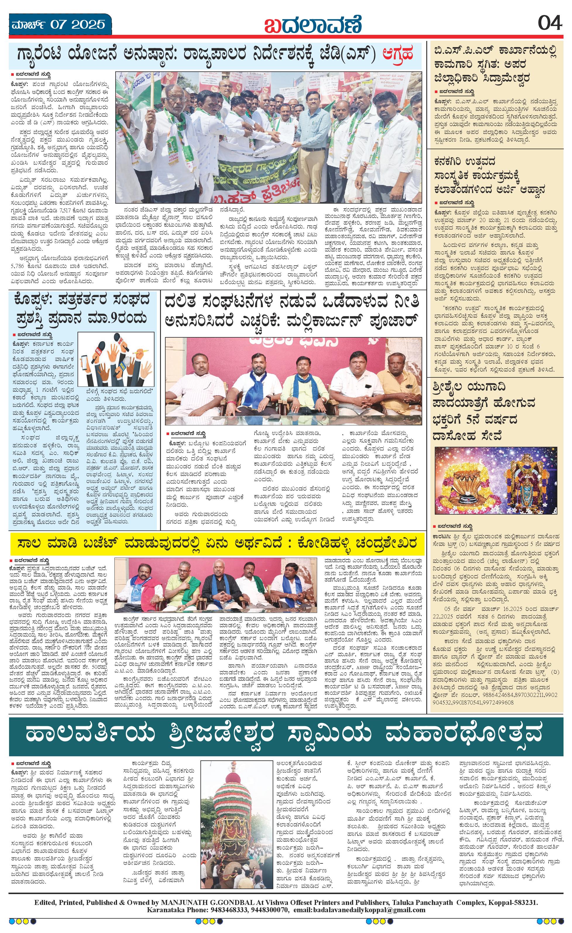 ಬದಲಾವಣೆ 07 MAR 2025 Page: 4 March 07, 2025 << First << 4 >> Last >> Page 1Page 2Page 3Page 4 × ಬದಲಾವಣೆ 07 MAR 2025 page-1page-2page-3page-4 << First << 4 >> Last >> page-1page-2page-3page-4 page-4