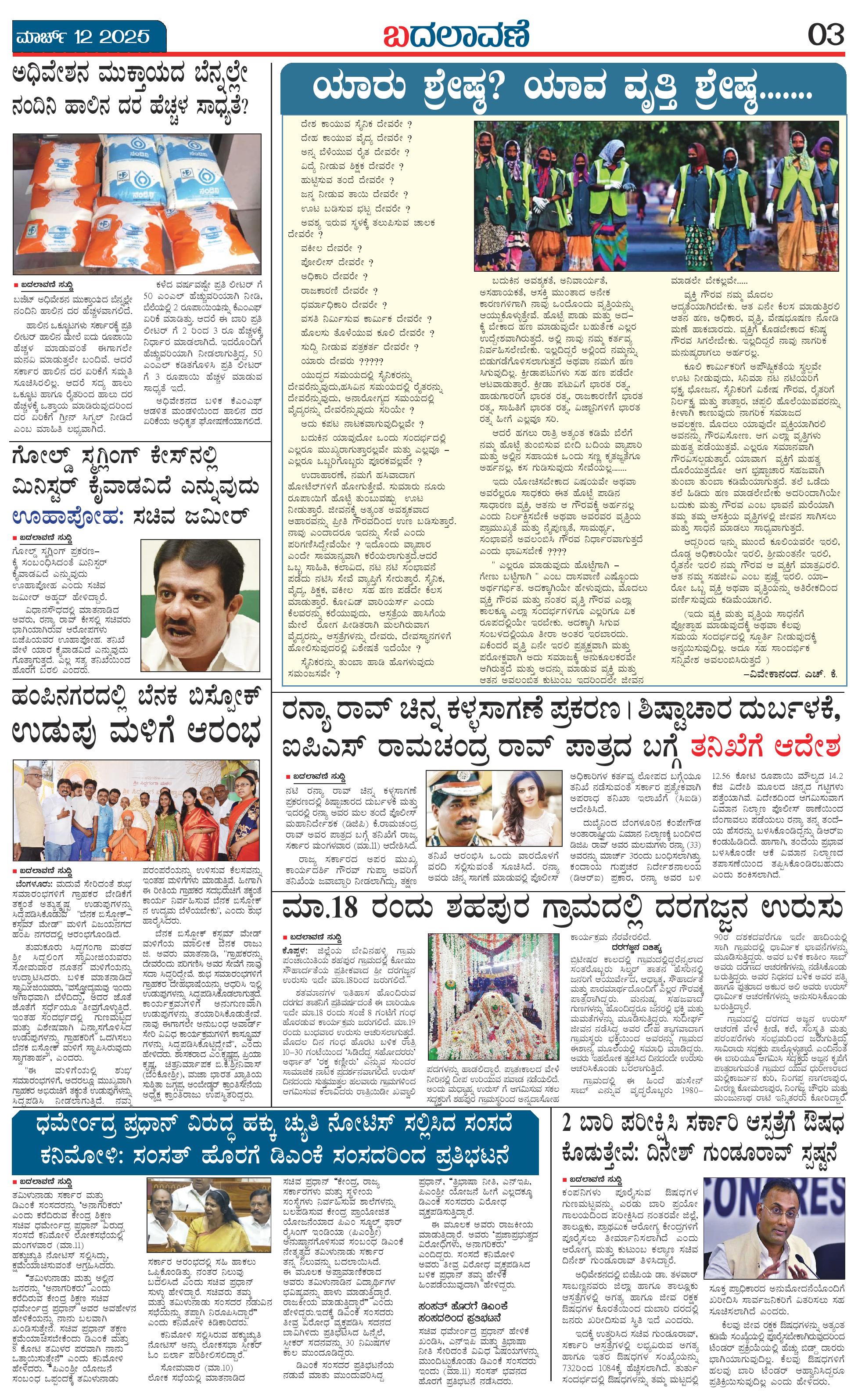 ಬದಲಾವಣೆ 12 MAR 2025 Page: 3 March 12, 2025 << First << 3 >> Last >> Page 1Page 2Page 3Page 4 × ಬದಲಾವಣೆ 12 MAR 2025 page-1page-2page-3page-4 << First << 3 >> Last >> page-1page-2page-3page-4 page-3