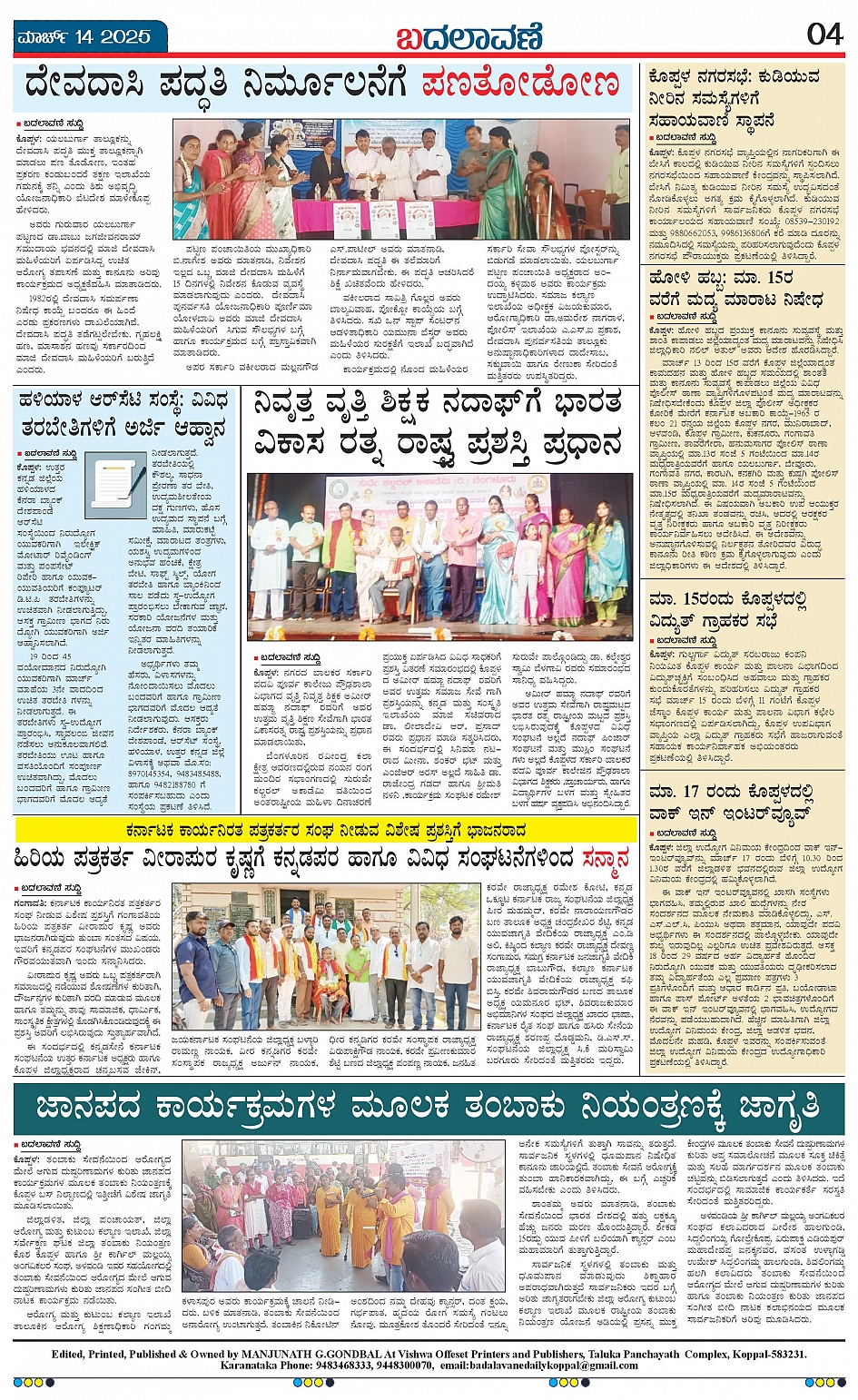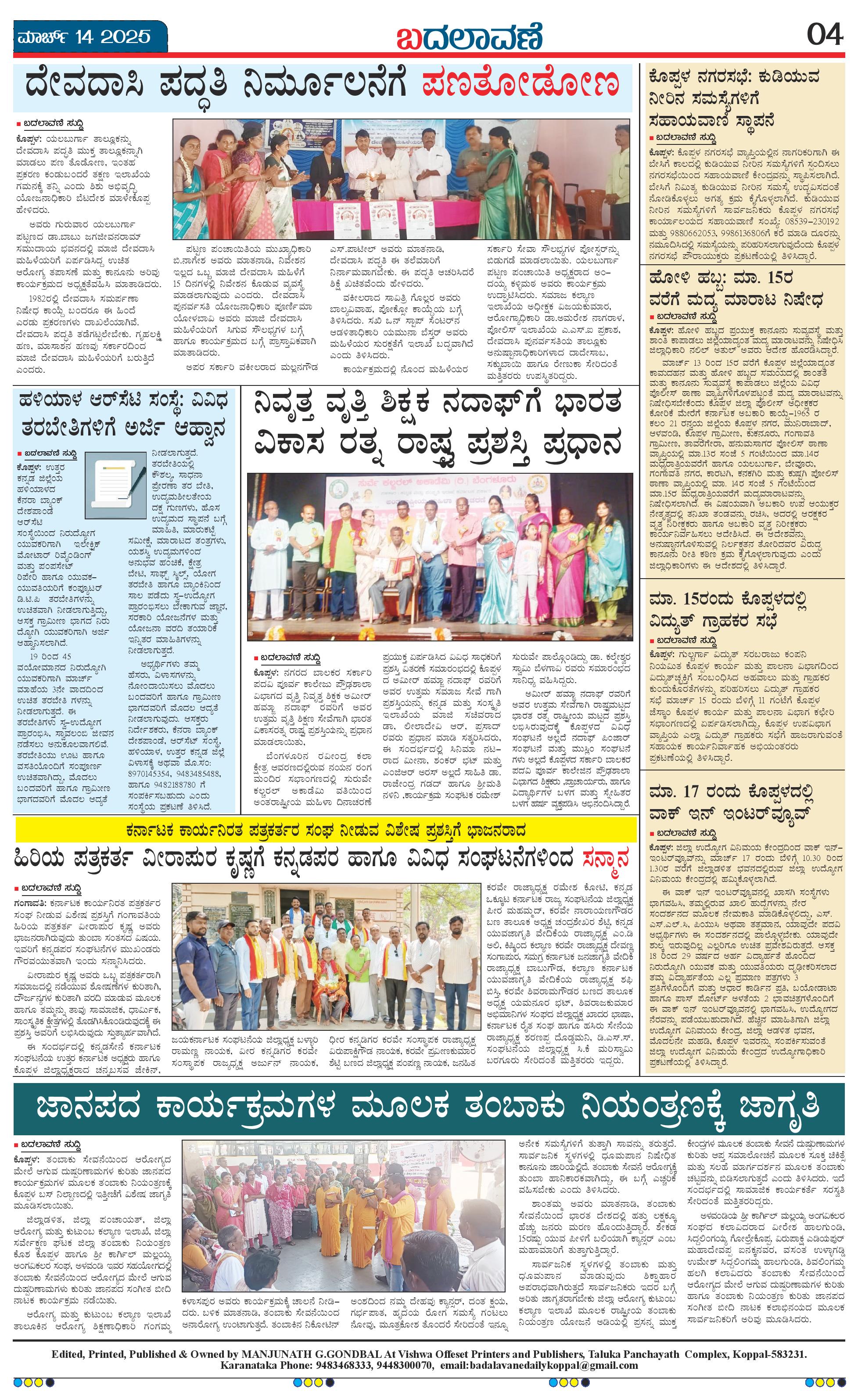 ಬದಲಾವಣೆ 14 MAR 2025 Page: 4 March 14, 2025 << First << 4 >> Last >> Page 1Page 2Page 3Page 4 × ಬದಲಾವಣೆ 14 MAR 2025 Badalavane March-14-koppal Edition pdf-page-001Badalavane March-14-koppal Edition pdf-page-002Badalavane March-14-koppal Edition pdf-page-003Badalavane March-14-koppal Edition pdf-page-004 << First << 4 >> Last >> Badalavane March-14-koppal Edition pdf-page-001Badalavane March-14-koppal Edition pdf-page-002Badalavane March-14-koppal Edition pdf-page-003Badalavane March-14-koppal Edition pdf-page-004 Badalavane March-14-koppal Edition pdf-page-004
