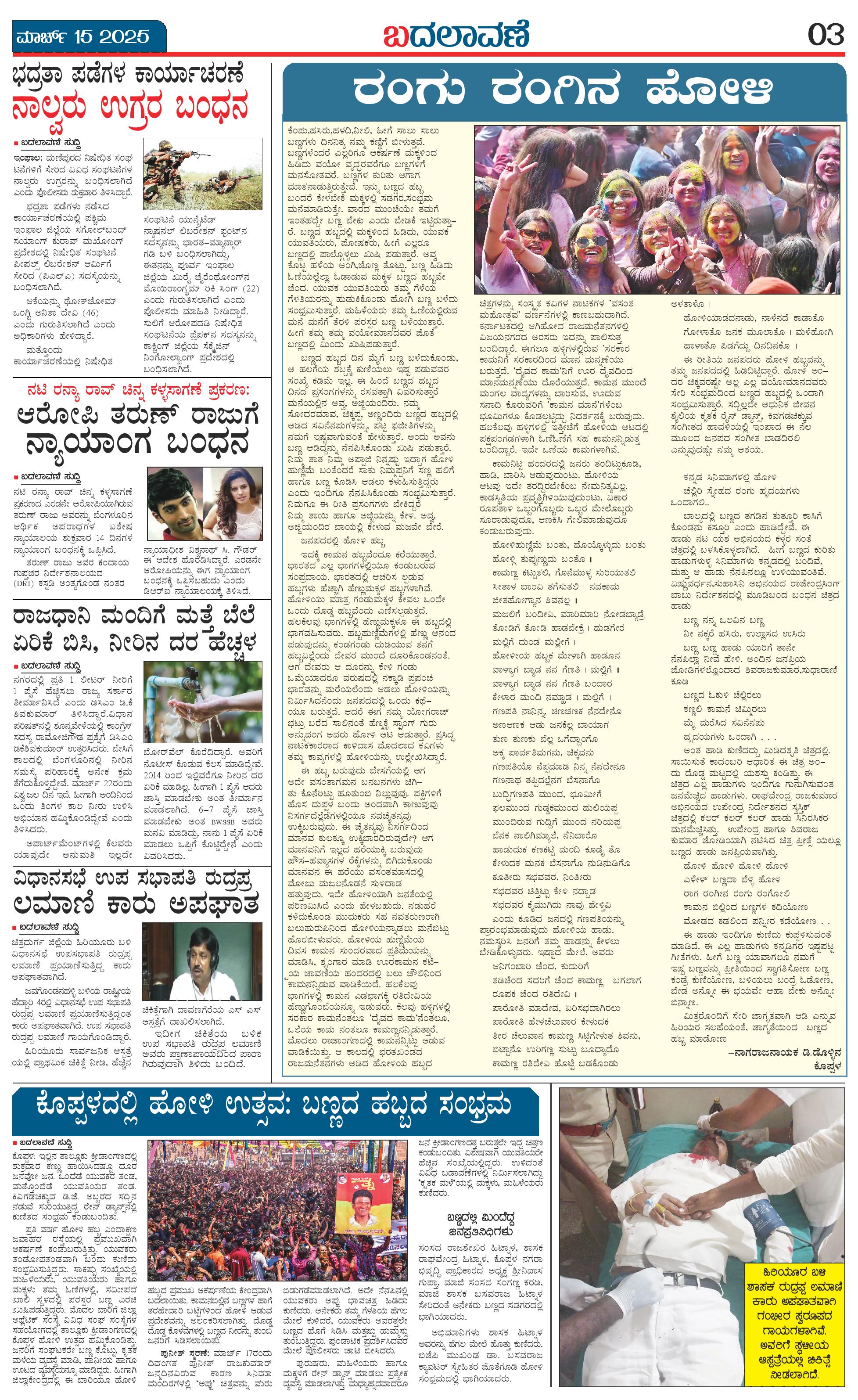 ಬದಲಾವಣೆ 15 MAR 2025 Page: 3 March 15, 2025 << First << 3 >> Last >> Page 1Page 2Page 3Page 4 × ಬದಲಾವಣೆ 15 MAR 2025 page-1page-2page-3page-4 << First << 3 >> Last >> page-1page-2page-3page-4 page-3