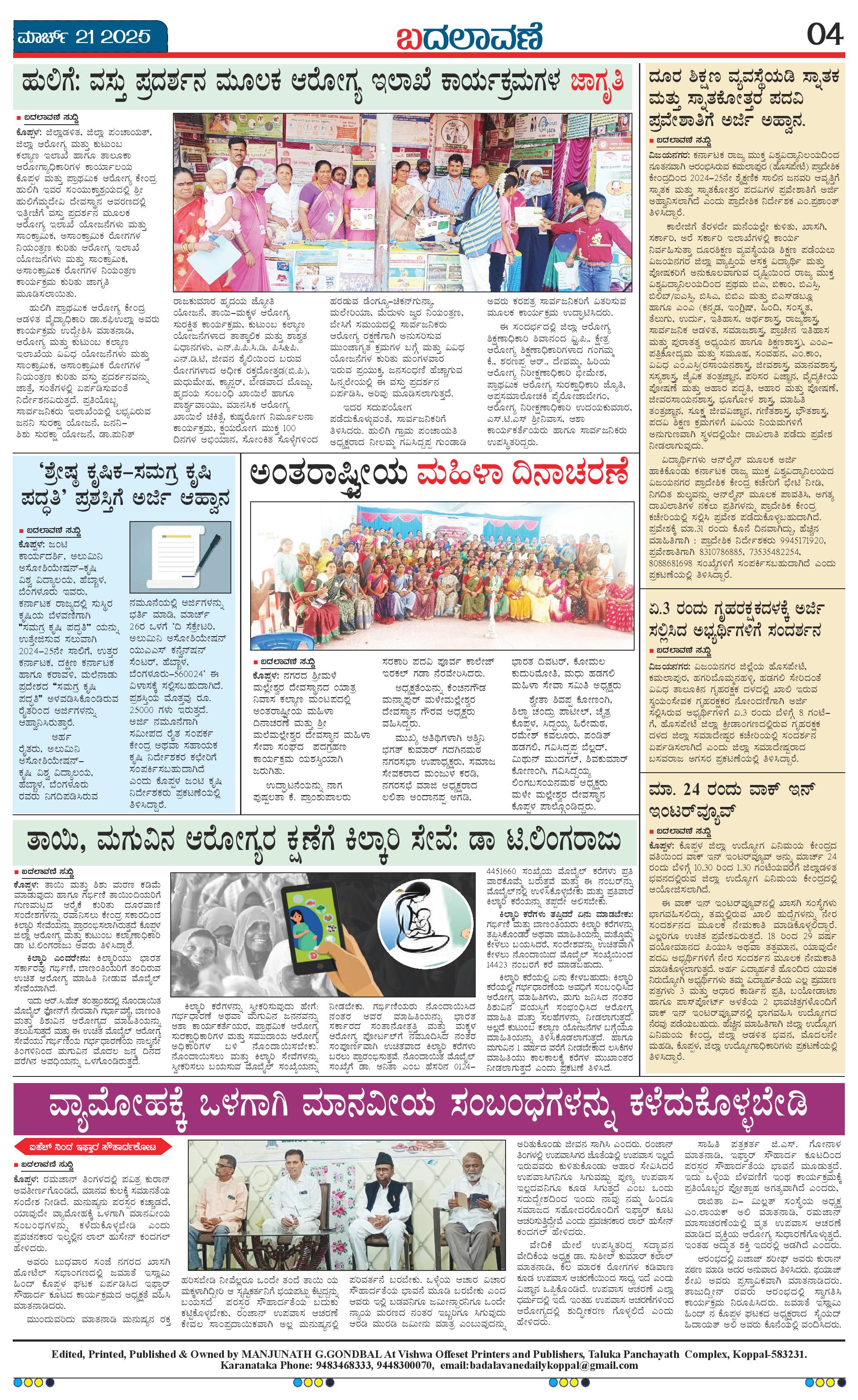 ಬದಲಾವಣೆ 21 MAR 2025 Page: 4 March 21, 2025 << First << 4 >> Last >> Page 1Page 2Page 3Page 4 × ಬದಲಾವಣೆ 21 MAR 2025 page-1page-2page-3page-4 << First << 4 >> Last >> page-1page-2page-3page-4 page-4