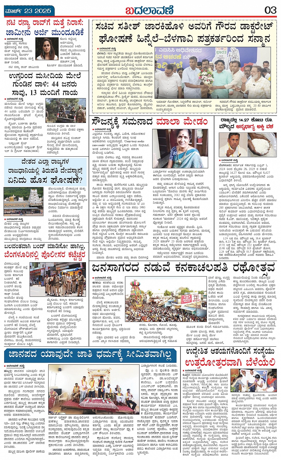 ಬದಲಾವಣೆ 23 MAR 2025 Page: 3 March 23, 2025 << First << 3 >> Last >> Page 1Page 2Page 3Page 4 × ಬದಲಾವಣೆ 23 MAR 2025 page-1page-2page-3page-4 << First << 3 >> Last >> page-1page-2page-3page-4 page-3