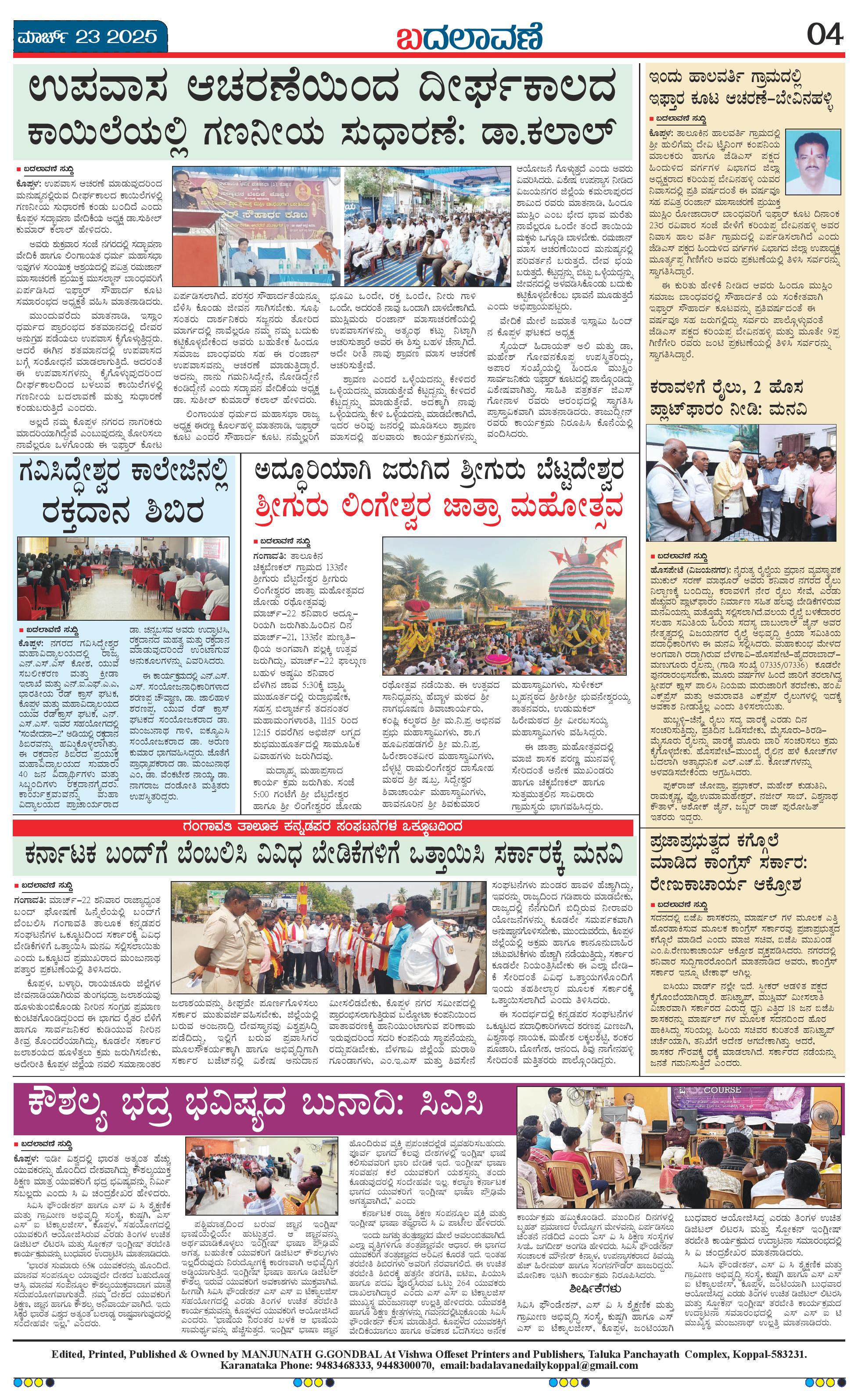 ಬದಲಾವಣೆ 23 MAR 2025 Page: 4 March 23, 2025 << First << 4 >> Last >> Page 1Page 2Page 3Page 4 × ಬದಲಾವಣೆ 23 MAR 2025 page-1page-2page-3page-4 << First << 4 >> Last >> page-1page-2page-3page-4 page-4