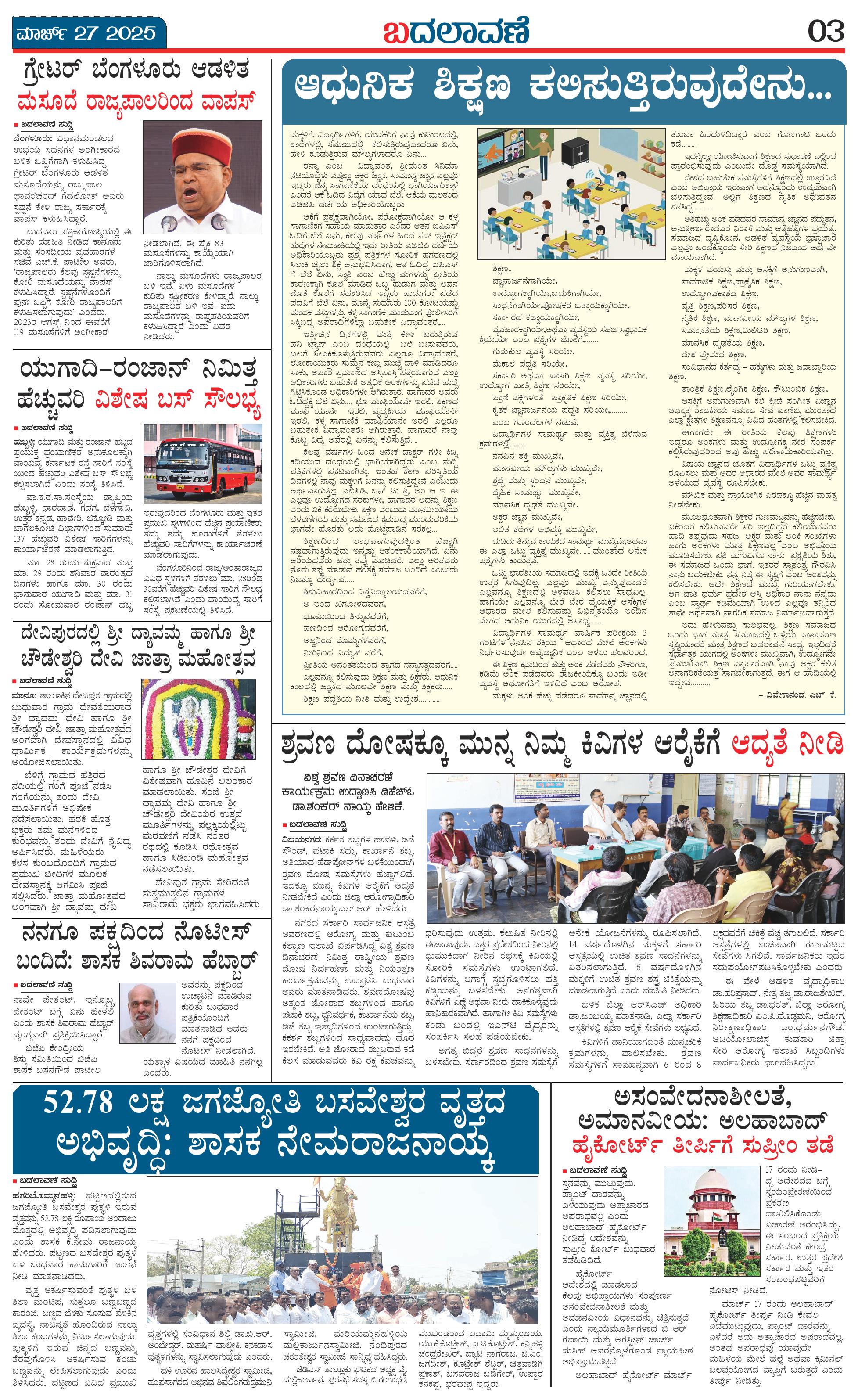 ಬದಲಾವಣೆ 27 MAR 2025 Page: 3 March 27, 2025 << First << 3 >> Last >> Page 1Page 2Page 3Page 4 × ಬದಲಾವಣೆ 27 MAR 2025 page-1page-2page-3page-4 << First << 3 >> Last >> page-1page-2page-3page-4 page-3
