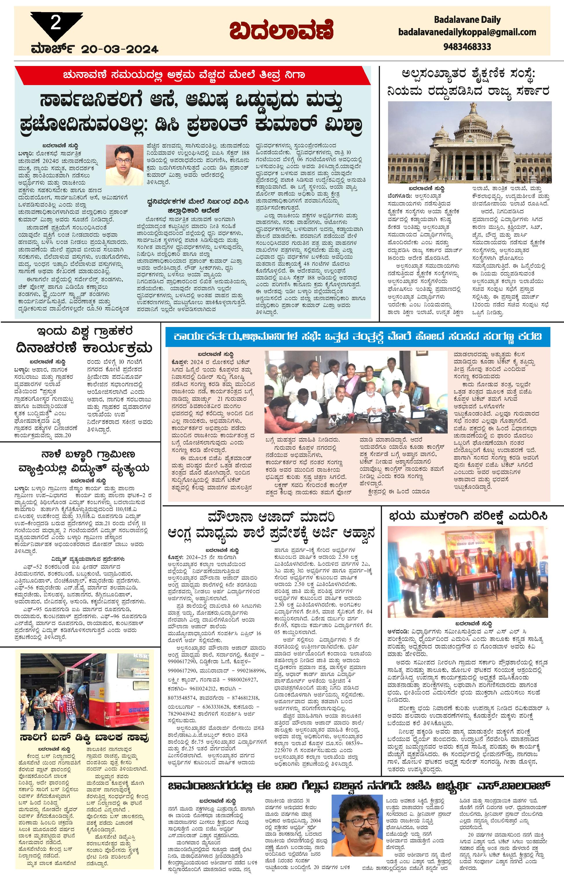 ಬದಲಾವಣೆ 20 Mar 2024 Page: 2 March 20, 2024 << First << 2 >> Last >> Page 1Page 2Page 3Page 4 × ಬದಲಾವಣೆ 20 Mar 2024 page-1page-2page-3page-4 << First << 2 >> Last >> page-1page-2page-3page-4 page-2