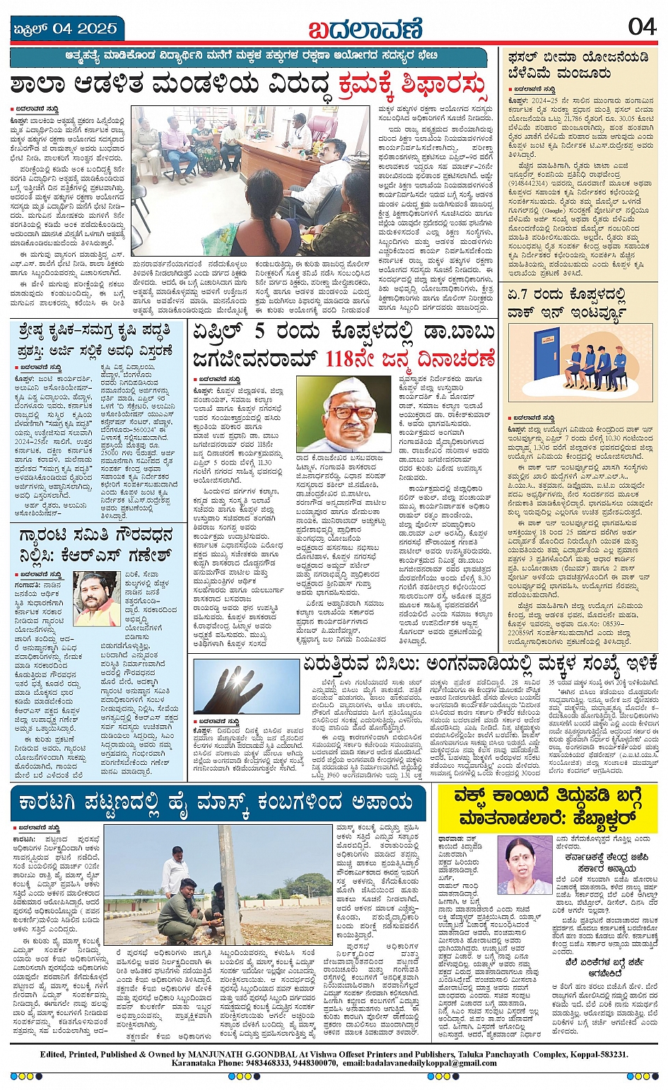 ಬದಲಾವಣೆ 04 APRIL 2025 Page: 4 April 04, 2025 << First << 4 >> Last >> Page 1Page 2Page 3Page 4 × ಬದಲಾವಣೆ 04 APRIL 2025 page-1page-2page-3page-4 << First << 4 >> Last >> page-1page-2page-3page-4 page-4