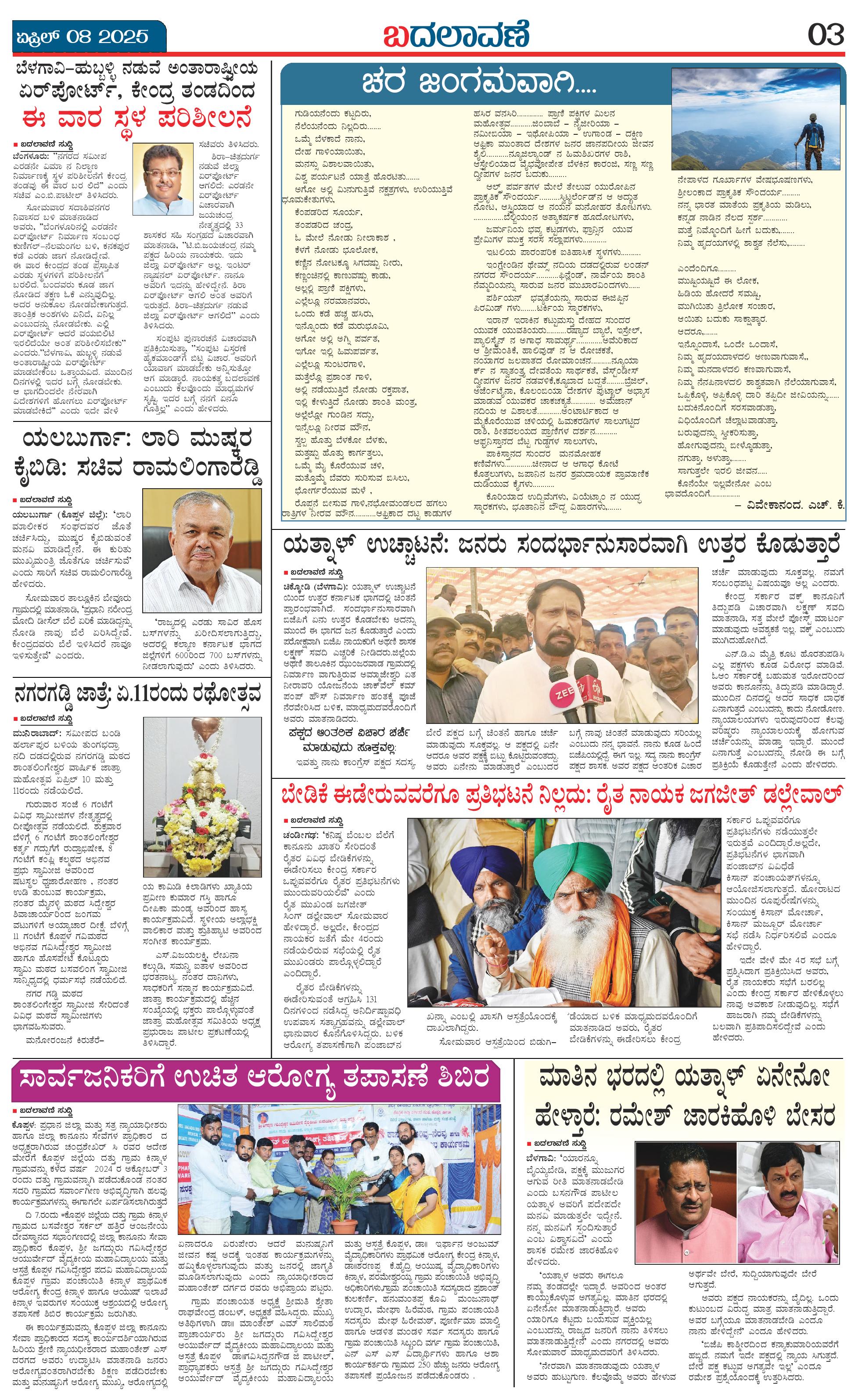 ಬದಲಾವಣೆ 08 APRIL 2025 Page: 3 April 08, 2025 << First << 3 >> Last >> Page 1Page 2Page 3Page 4 × ಬದಲಾವಣೆ 08 APRIL 2025 page-1page-2page-3page-4 << First << 3 >> Last >> page-1page-2page-3page-4 page-3