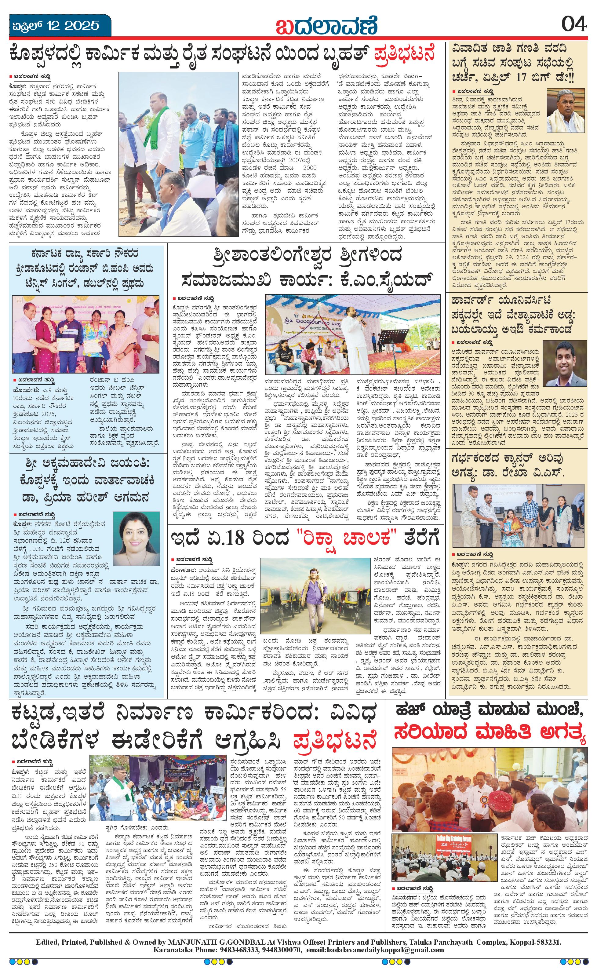 ಬದಲಾವಣೆ 12 APRIL 2025 Page: 4 April 12, 2025 << First << 4 >> Last >> Page 1Page 2Page 3Page 4 × ಬದಲಾವಣೆ 12 APRIL 2025 page-1page-2page-3page-4 << First << 4 >> Last >> page-1page-2page-3page-4 page-4