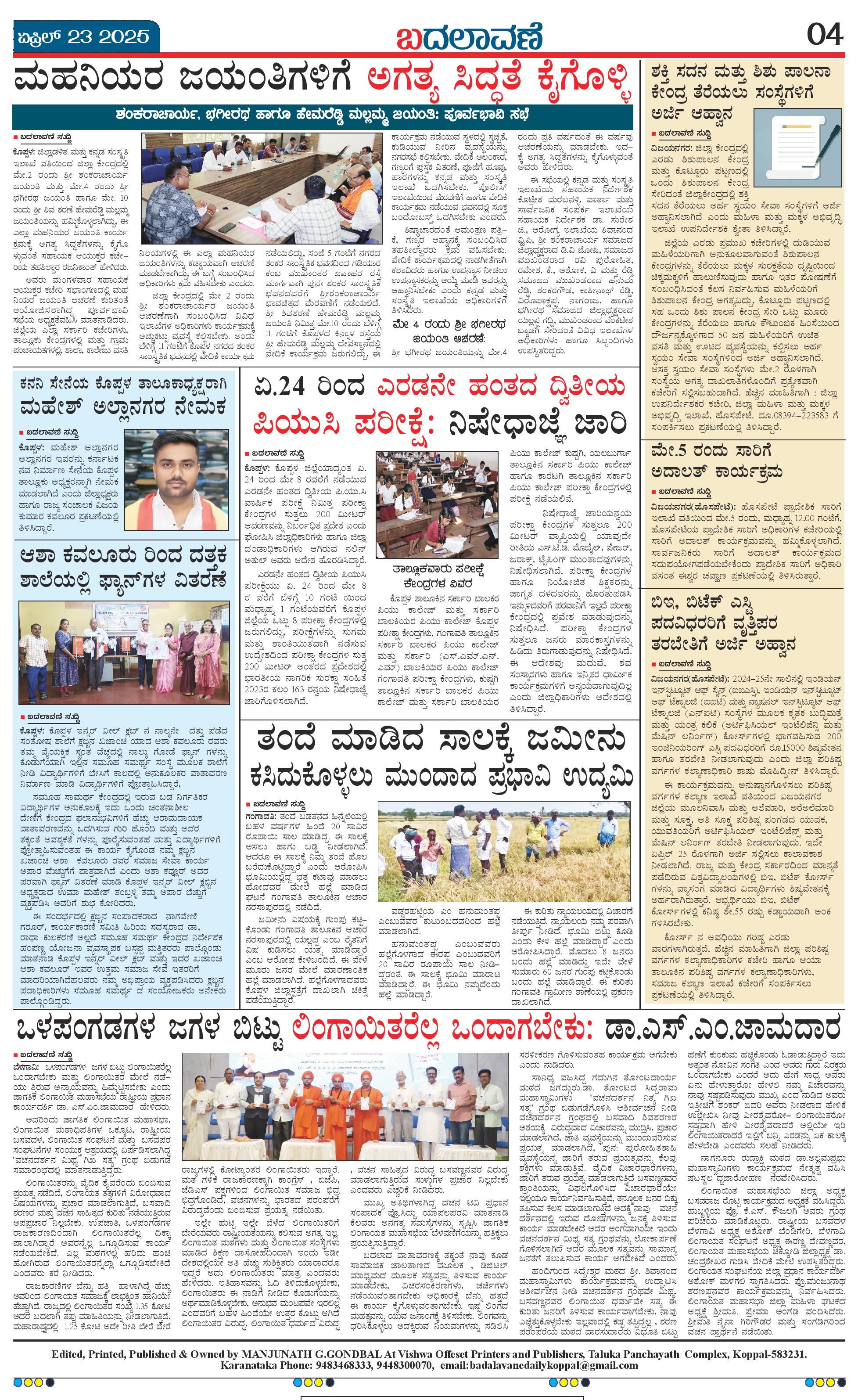 ಬದಲಾವಣೆ 23 APRIL 2025 Page: 4 April 23, 2025 << First << 4 >> Last >> Page 1Page 2Page 3Page 4 × ಬದಲಾವಣೆ 23 APRIL 2025 page-1page-2page-3page-4 << First << 4 >> Last >> page-1page-2page-3page-4 page-4