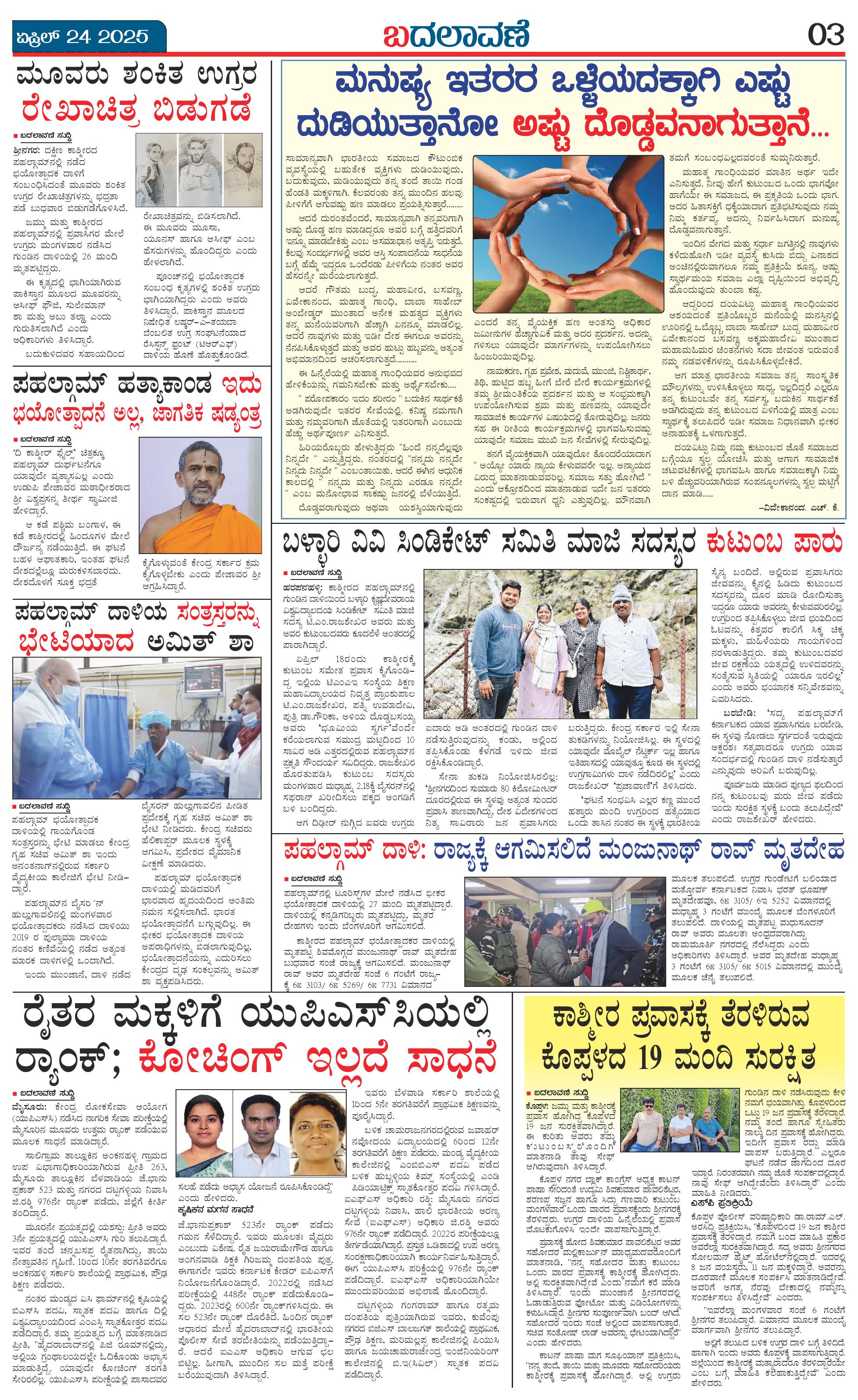 ಬದಲಾವಣೆ 24 APRIL 2025 Page: 3 April 24, 2025 << First << 3 >> Last >> Page 1Page 2Page 3Page 4 × ಬದಲಾವಣೆ 24 APRIL 2025 page-1page-2page-3page-4 << First << 3 >> Last >> page-1page-2page-3page-4 page-3
