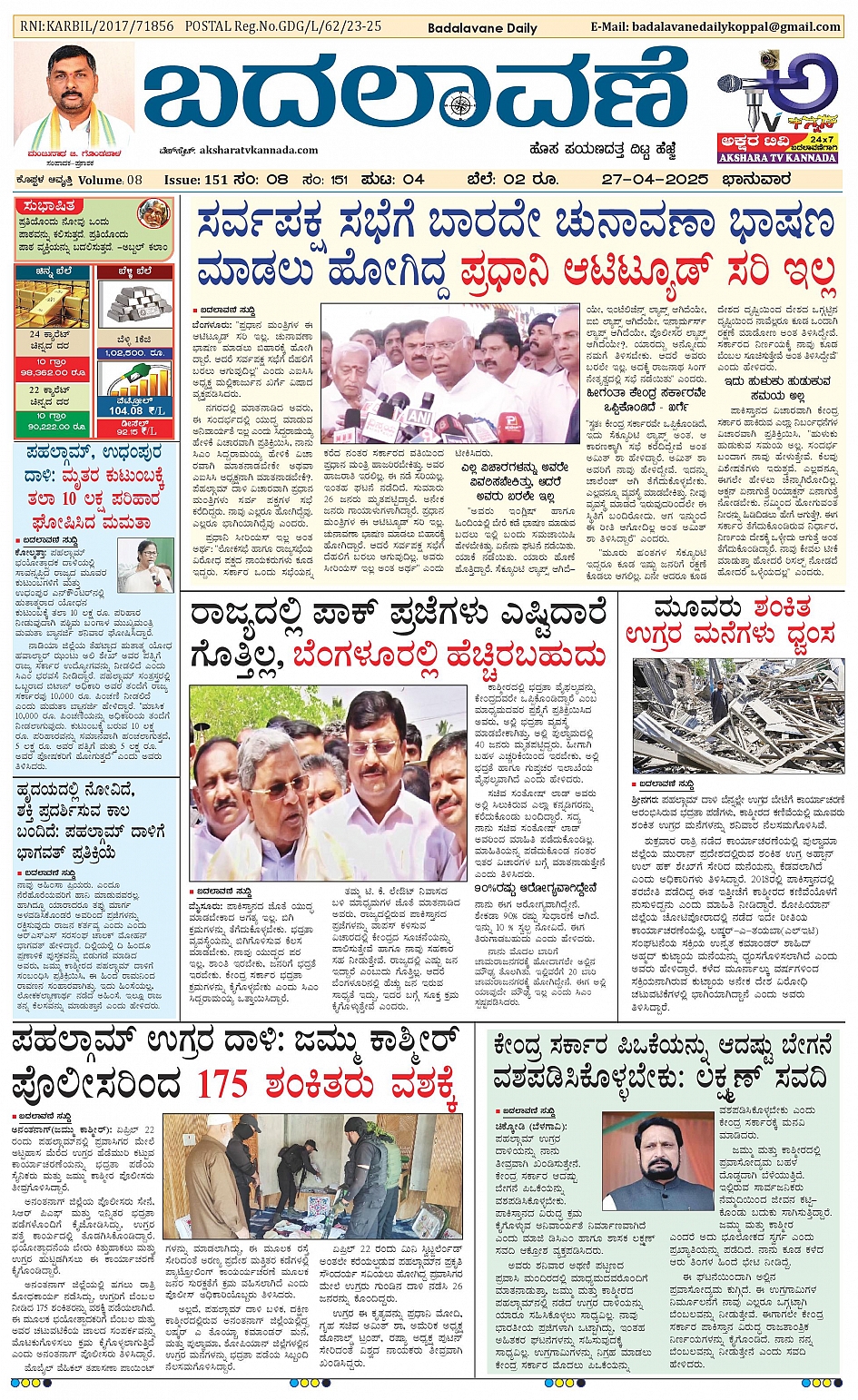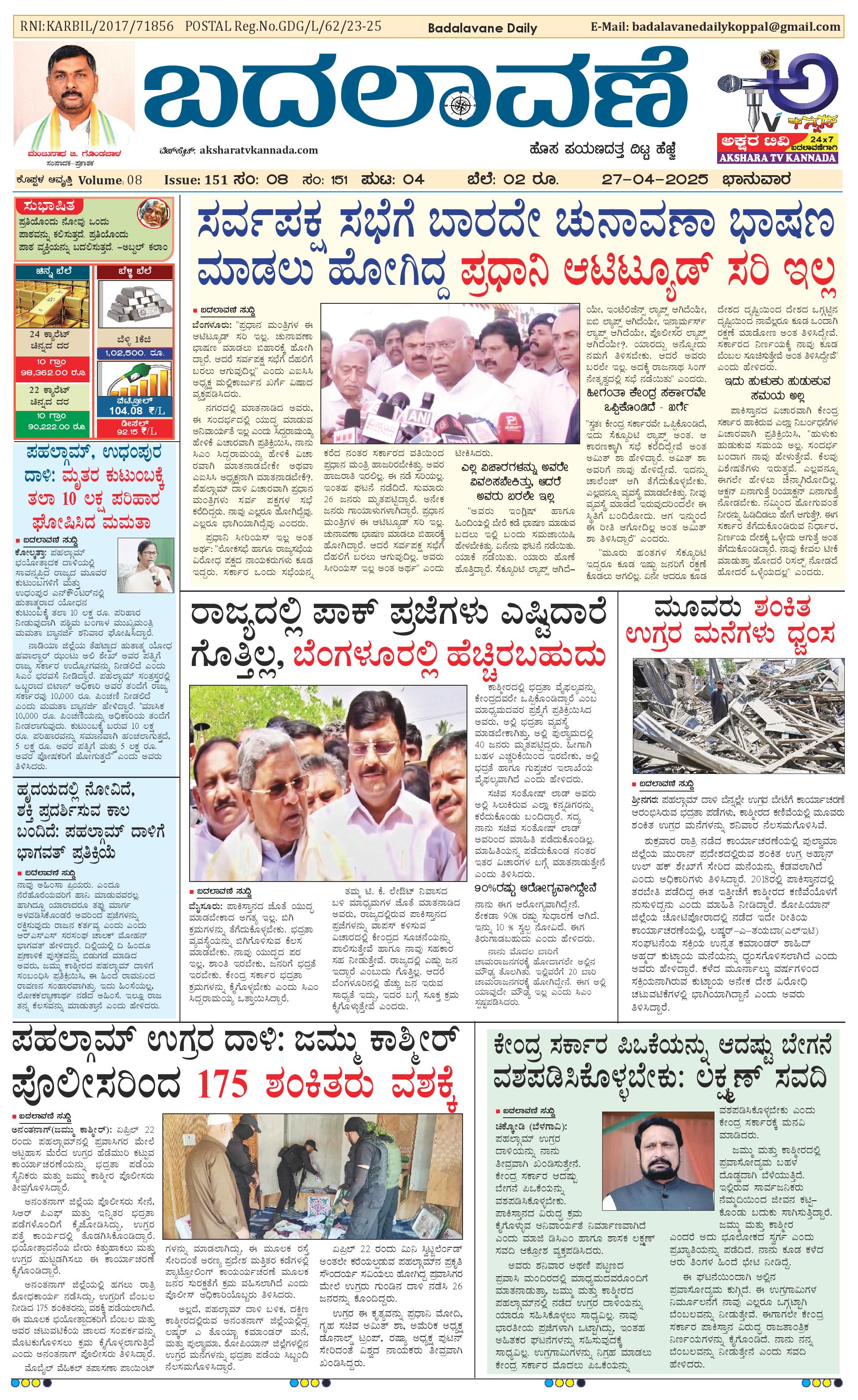 ಬದಲಾವಣೆ 27 APRIL 2025 April 27, 2025 << First << 1 >> Last >> Page 1Page 2Page 3Page 4 × ಬದಲಾವಣೆ 27 APRIL 2025 page-1page-2page-3page-4 << First << 1 >> Last >> page-1page-2page-3page-4 page-1
