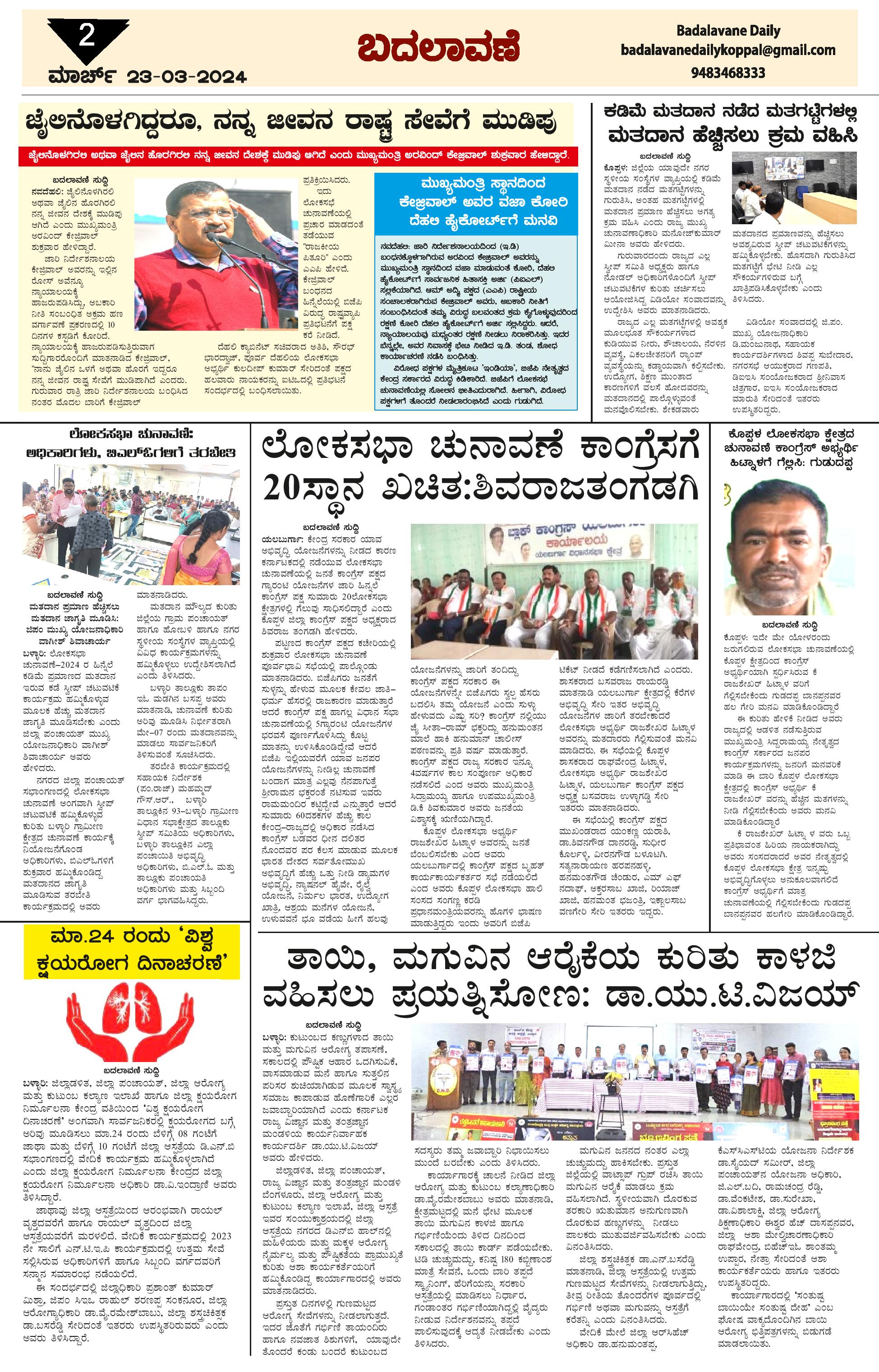 ಬದಲಾವಣೆ 23 Mar 2024 Page: 2 March 23, 2024 << First << 2 >> Last >> Page 1Page 2Page 3Page 4 × ಬದಲಾವಣೆ 23 Mar 2024 page-1page-2page-3page-4 << First << 2 >> Last >> page-1page-2page-3page-4 page-2